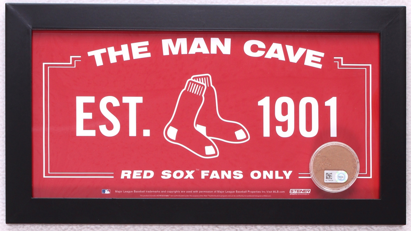 Red Sox "The Man Cave" 7x13 Custom Framed Poster with Authentic Fenway Park Dirt (MLB & Steiner COA)