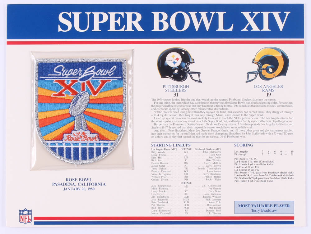 1980 Commemorative Super Bowl XIV Card with Patch: Steelers vs. Rams