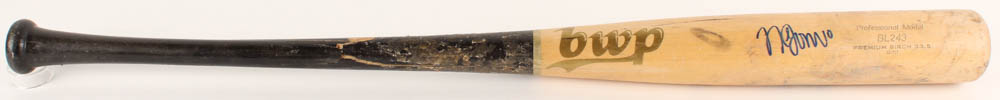 BWP Baseball bat. Hand-signed in blue felt tip pen by Nolan Jones (Cleveland Indians). Please note, the bat has been game-used and cracked by an unknown player.