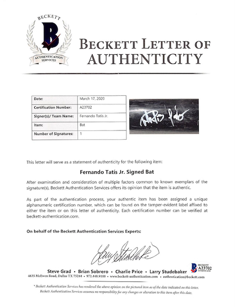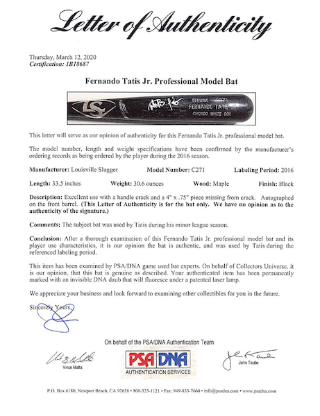 Fernando Tatis Jr. Signed 2016 Game-Used Louisville Slugger Baseball Bat (Beckett LOA & PSA LOA)