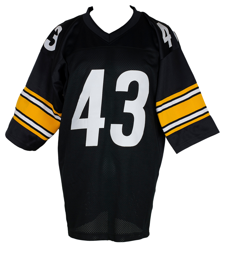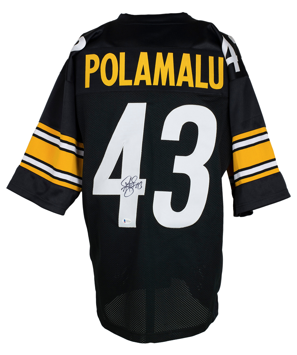 Custom on-field style jersey. Everything is sewn on, size XL. Hand-signed by Troy Polamalu (HOF).