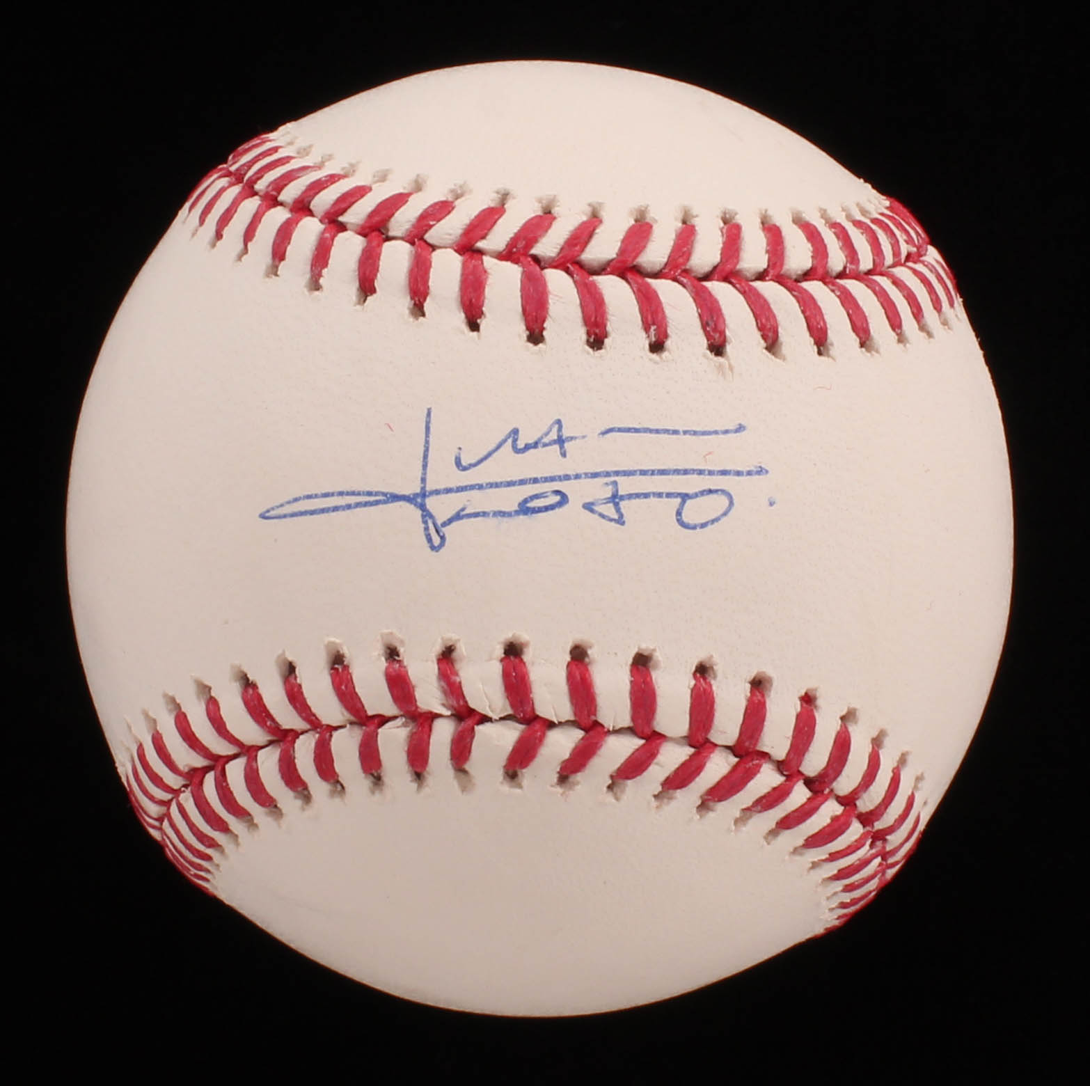 Rawlings Official Major League Baseball has been hand-signed in blue ink pen by Juan Soto (Washington Nationals).