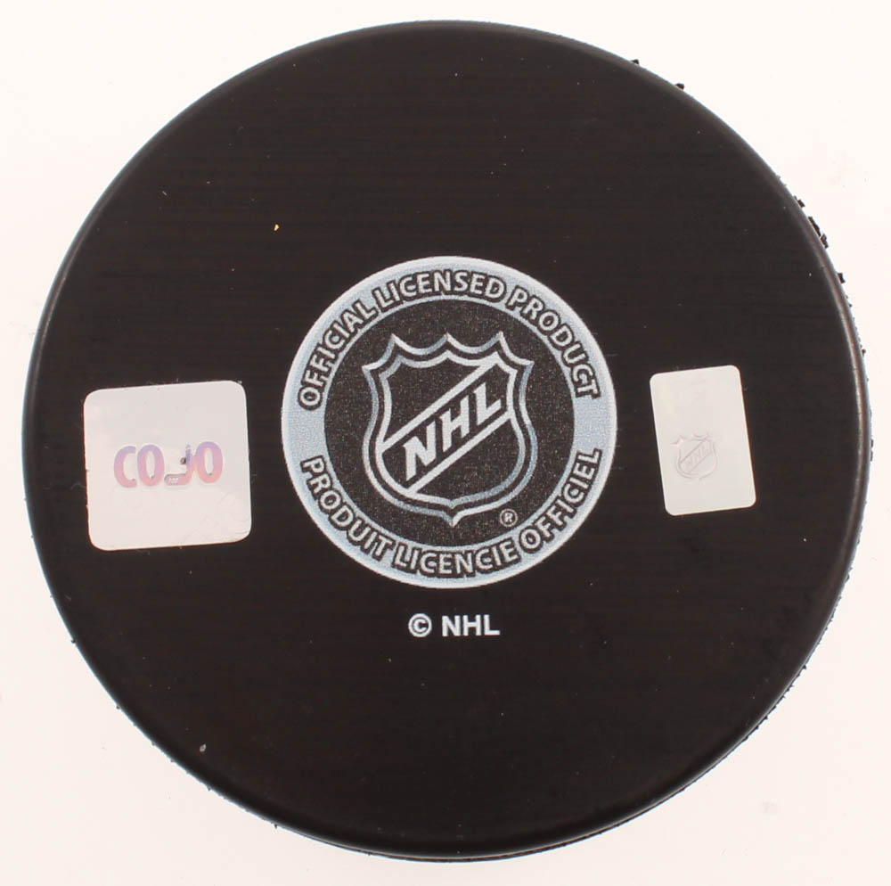 New York Islanders Logo Hockey Puck. Hand-signed and inscribed in silver paint pen by Billy Smith (HOF).