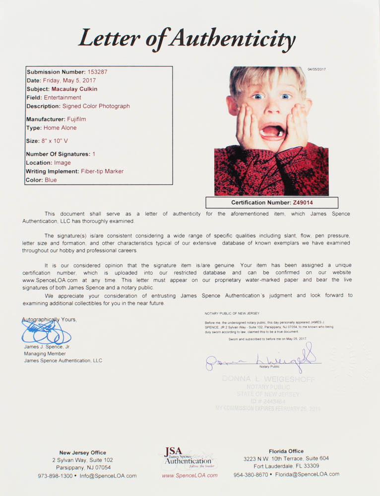 Macaulay Culkin Signed "Home Alone" 8x10 Photo (JSA LOA)