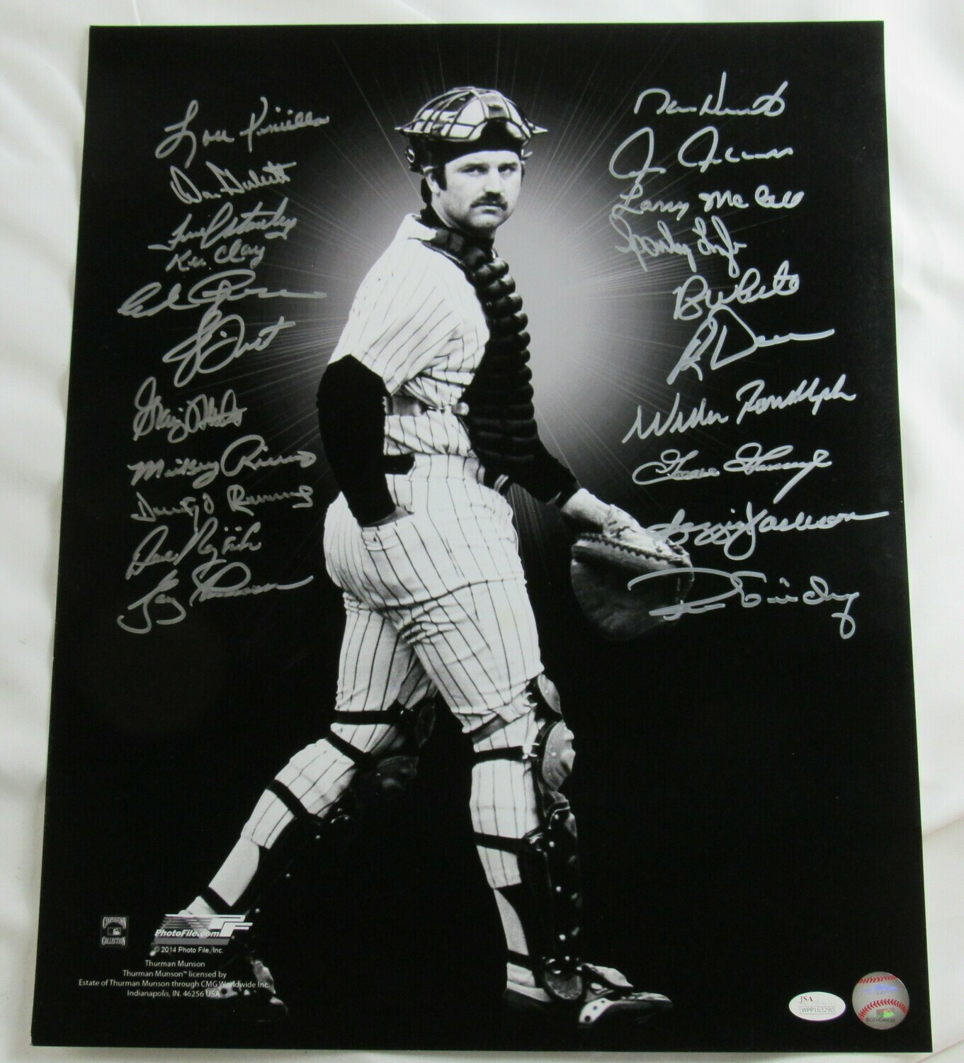 Photo measures 16" x 20" in size and has been hand-signed by (21) members of the 1978 New York Yankees including Lou Piniella, Don Gullett, Fred Stanley, Ken Clay, Ed Figueroa, Bucky Dent, Graig Nettles, Mickey Rivers, Domingo Ramos, Dave Rajsich, Gary Thomasson, Ron Guidry, Mike Heath, Chris Chambliss, Larry McCall, Sparky Lyle, Roy White, Ron Davis, Willie Randolph, Goose Gossage and Reggie Jackson.