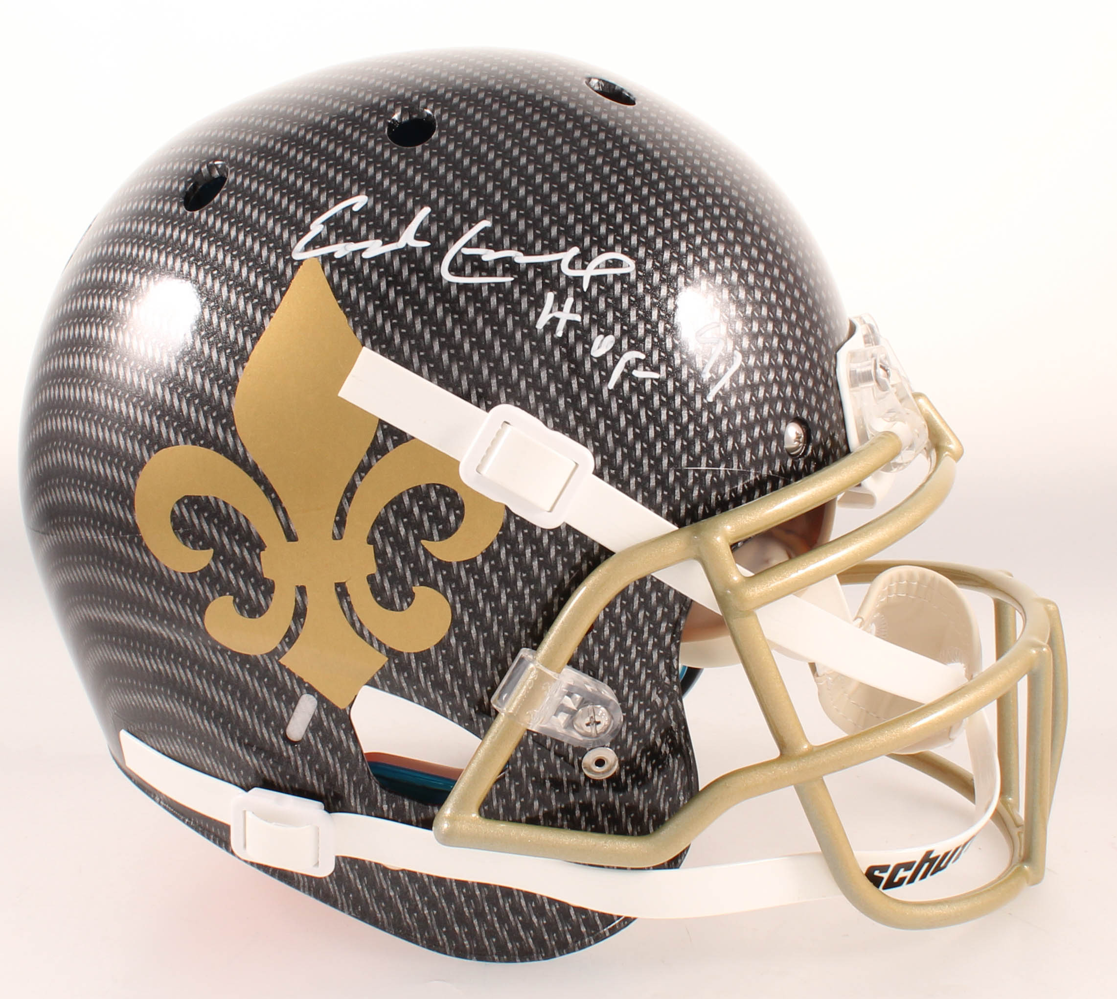 Schutt New Orleans Saints Full-Size Authentic On-Field Hydro-Dipped Helmet. Hand-signed and inscribed in white paint pen by Earl Campbell (HOF).