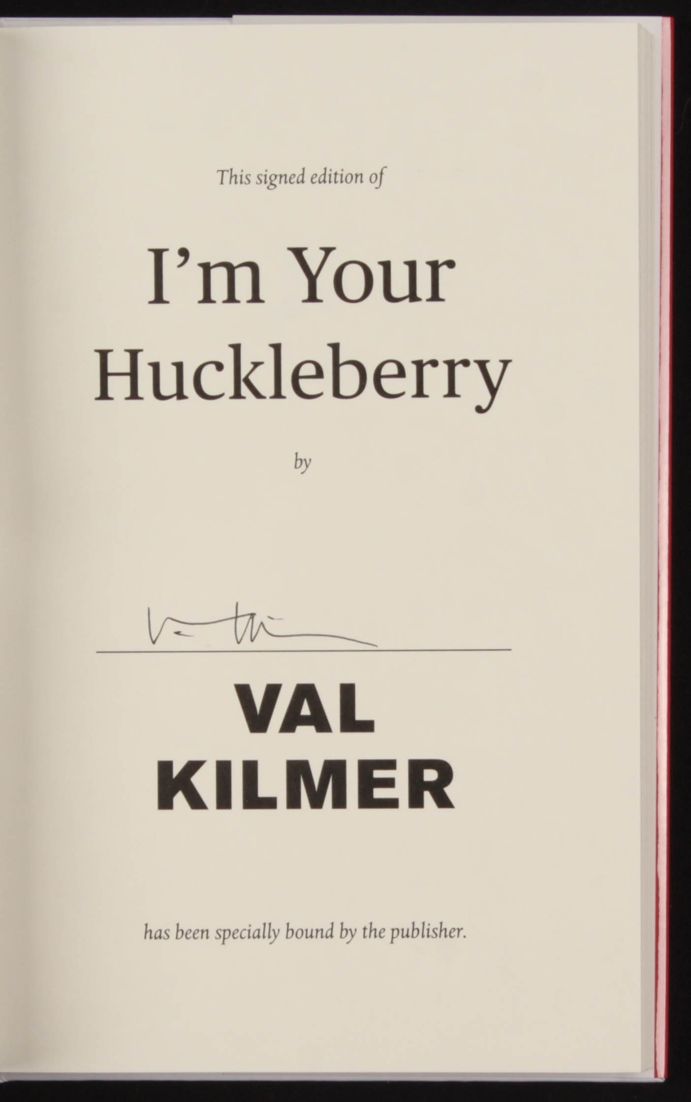 "I'm Your Huckleberry" hardcover book inside title page has been hand-signed in black ink pen by Val Kilmer. Please see images for details regarding the condition of the book.