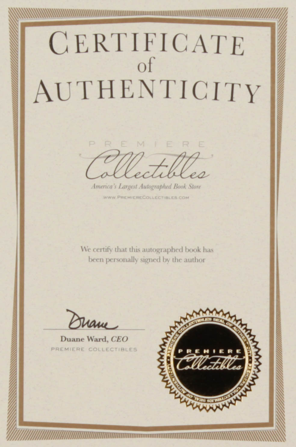 The book includes an official Premier Collectibles COA for authenticity purposes.
