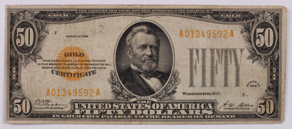 1928 $50 Fifty-Dollar U.S. Gold Certificate Bank Note