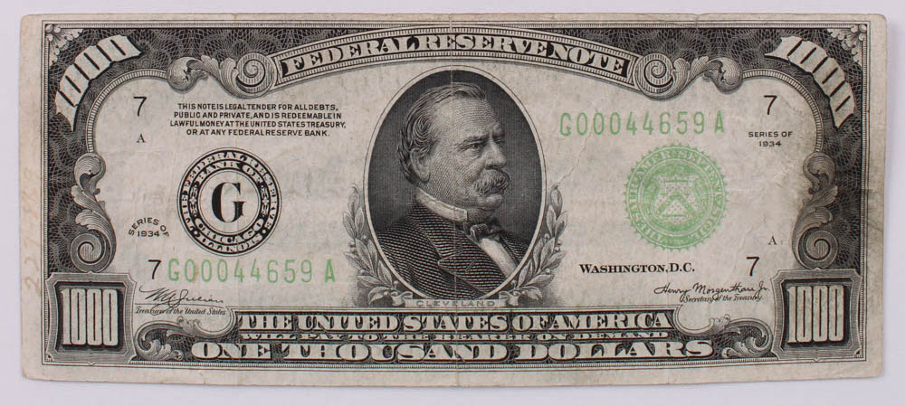 1934 $1,000 One-Thousand Dollar Federal Reserve Note
