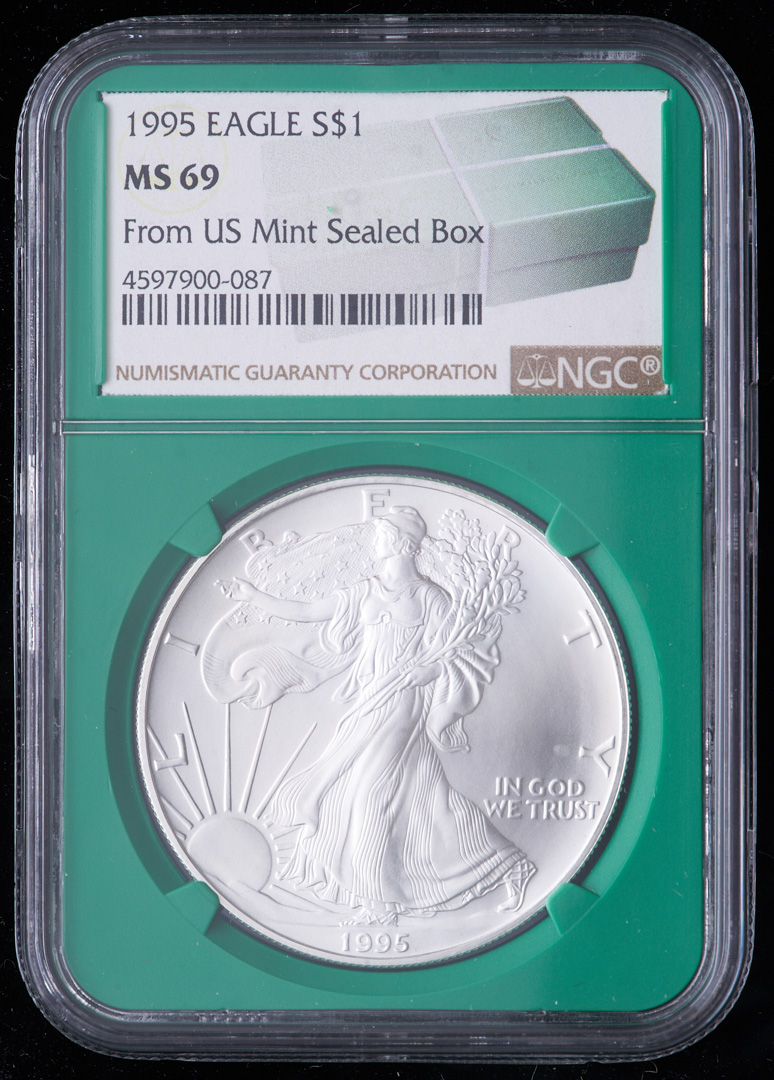 1995 American Silver Eagle $1 One Dollar Coin - From U.S. Mint Sealed Box (NGC MS69) (Green Core Holder)