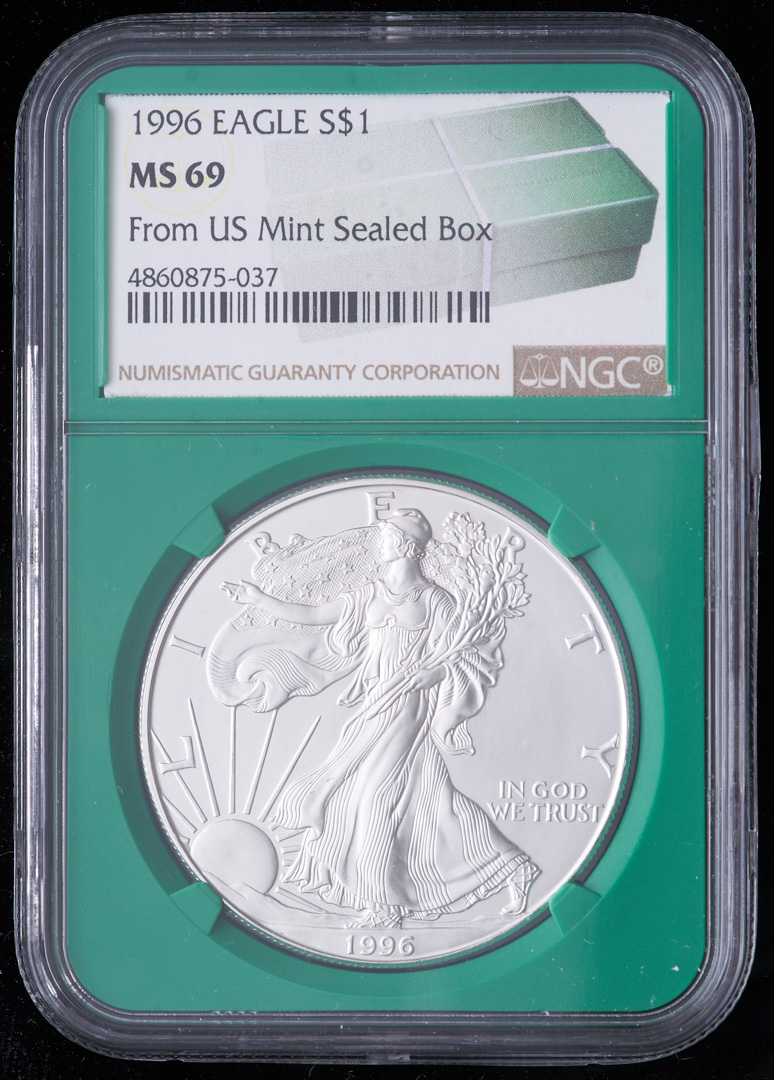 1996 American Silver Eagle $1 One Dollar Coin - From U.S. Mint Sealed Box (NGC MS69) (Green Core Holder)
