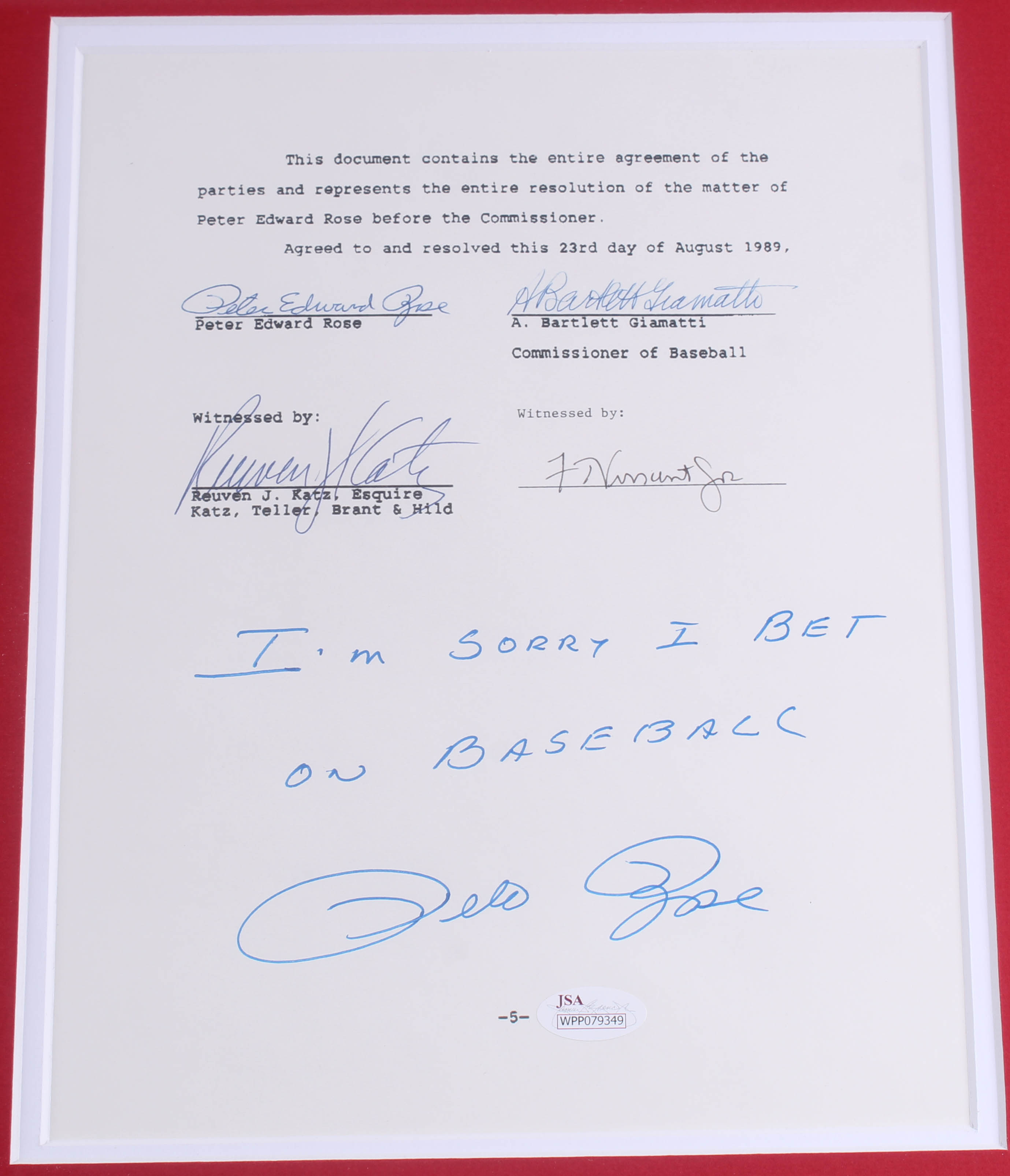 Pete Rose Twice-Signed Dowd Report 34x42 Custom Framed Document & Photo Display (JSA COA & Fiterman Hologram)