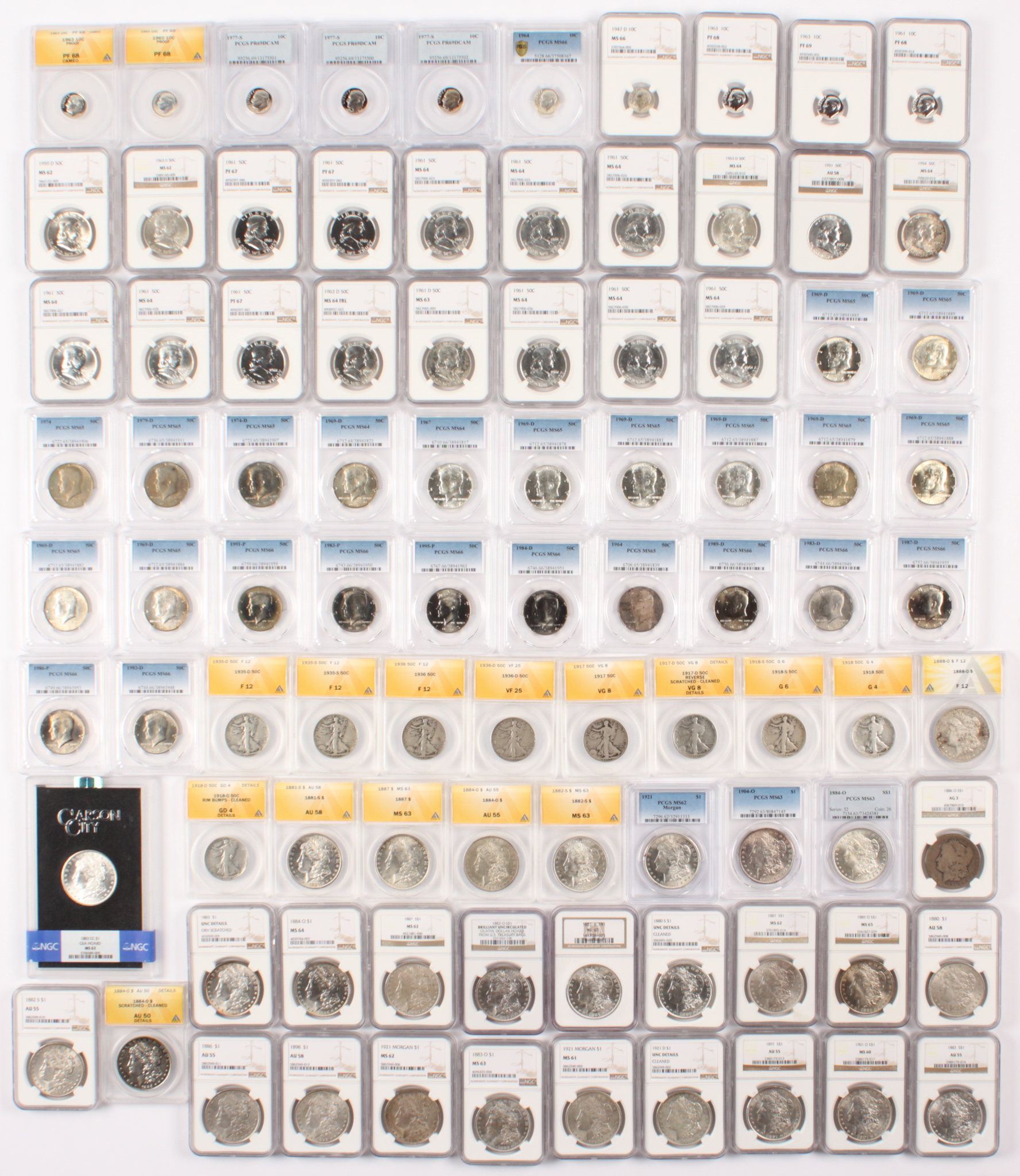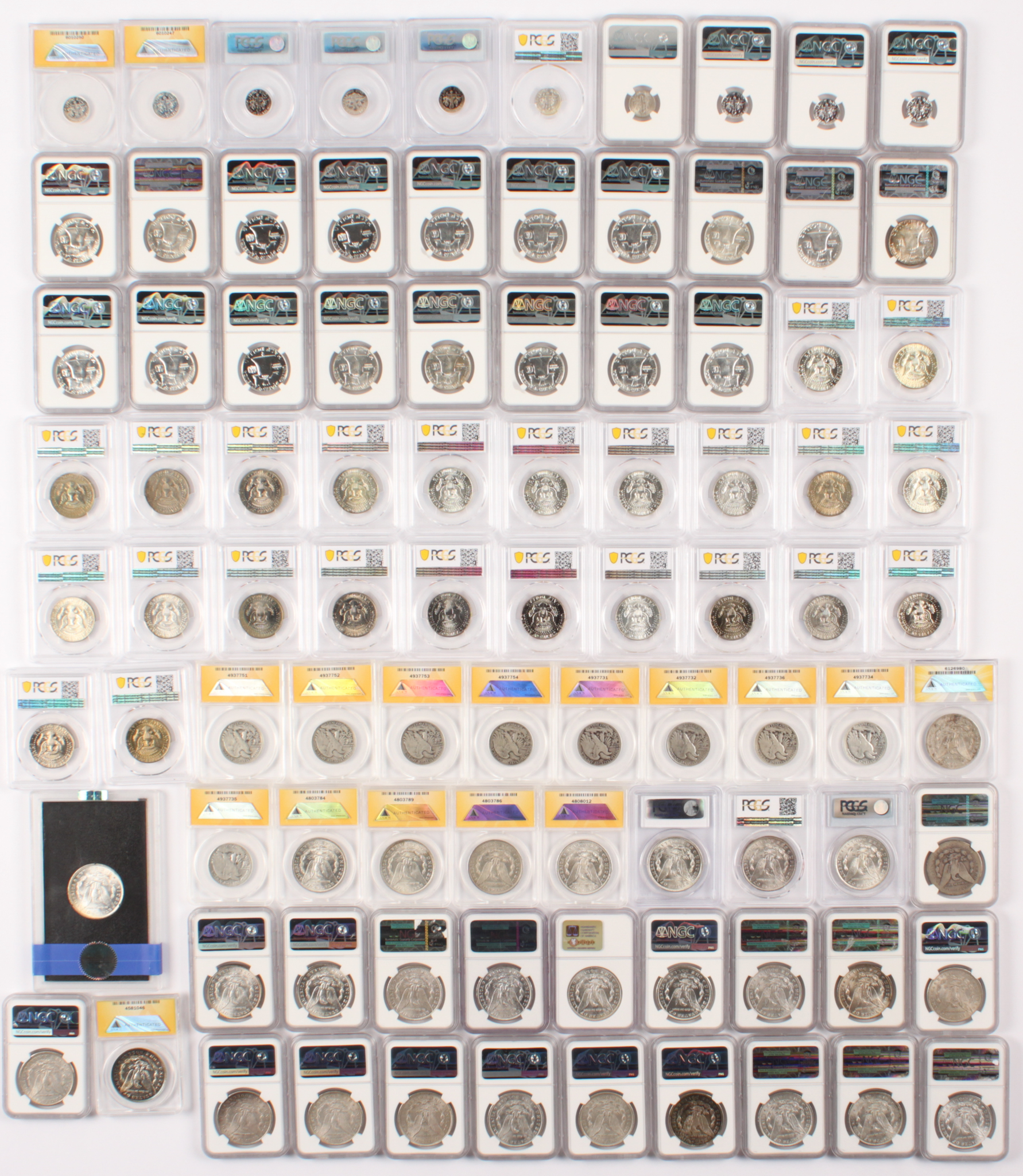 Lot includes all (60) NGC, PCGS & ANACS graded coins shown with: