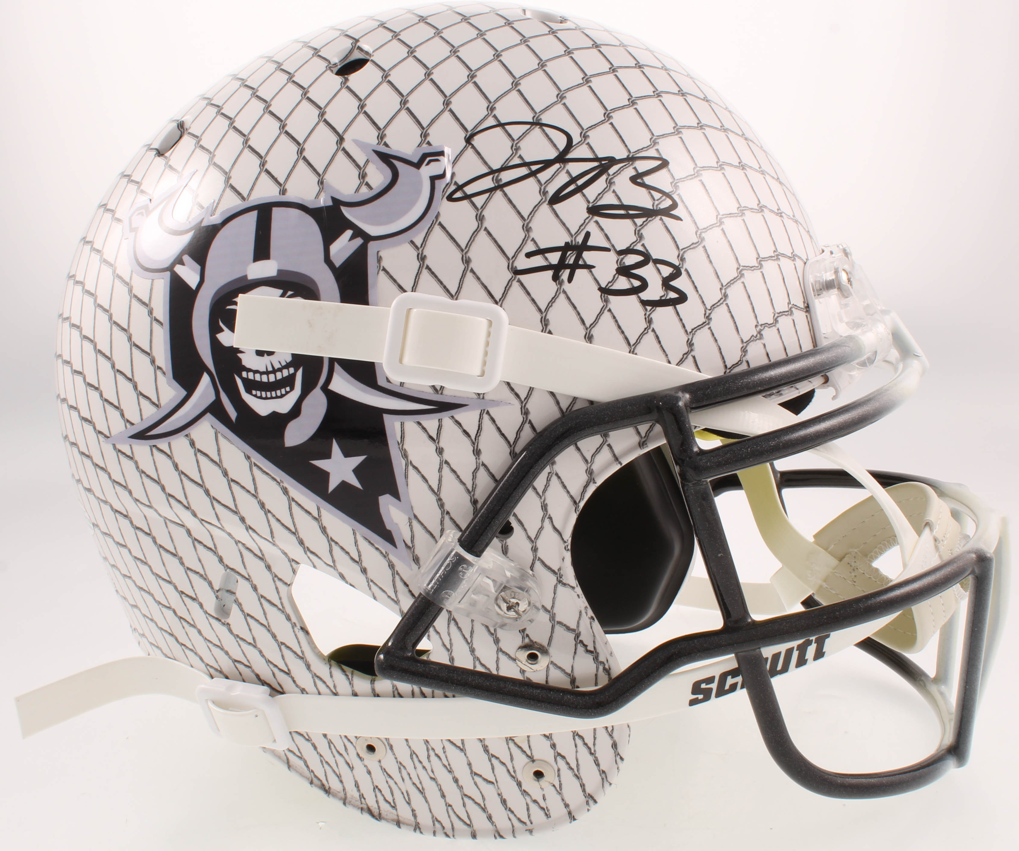 Schutt Las Vegas Raiders full-size authentic on-field hydro dipped helmet. Hand-signed in black felt tip pen by Lynn Bowden.