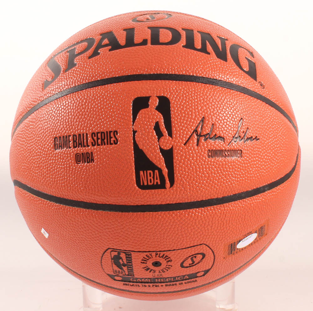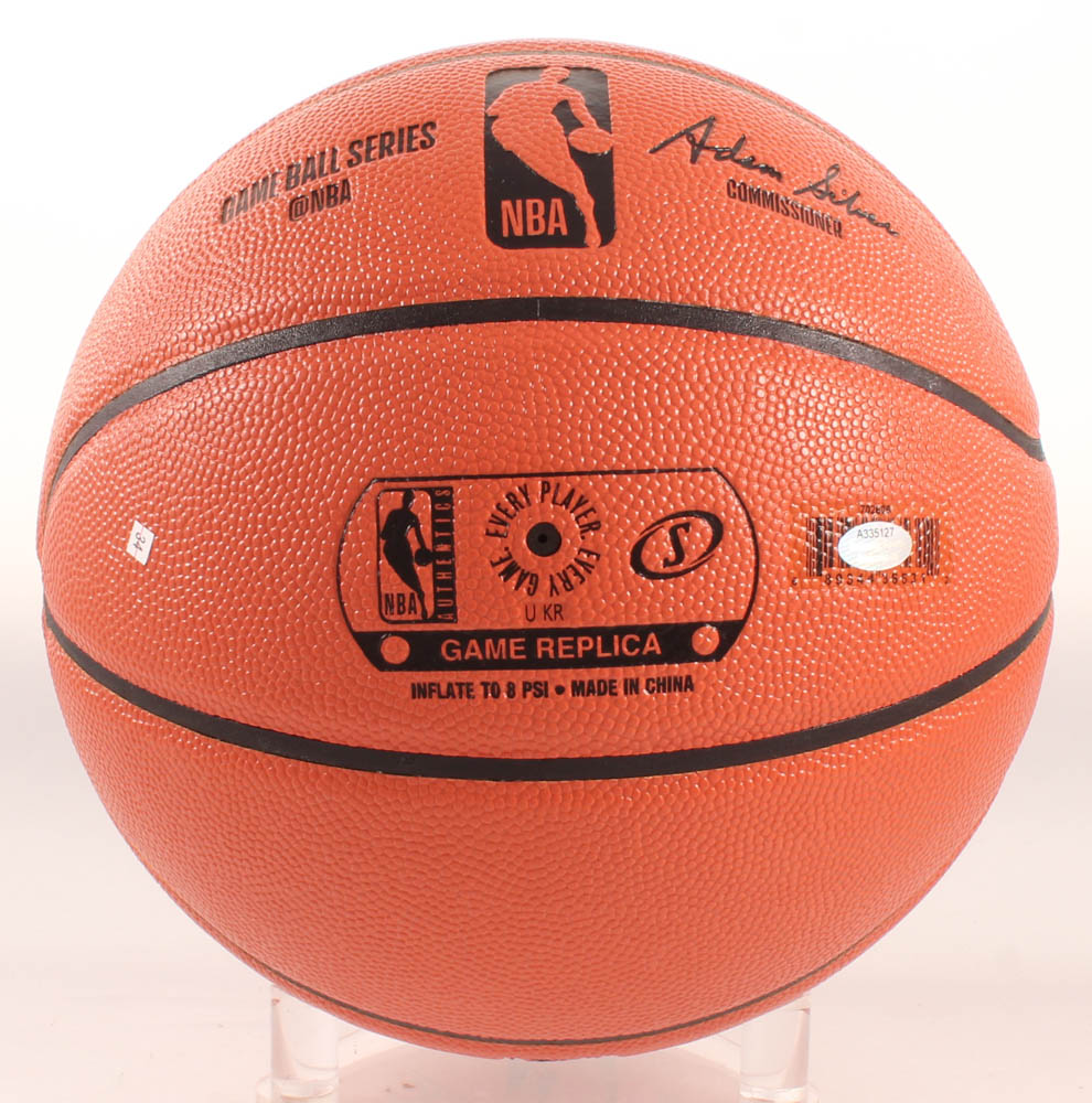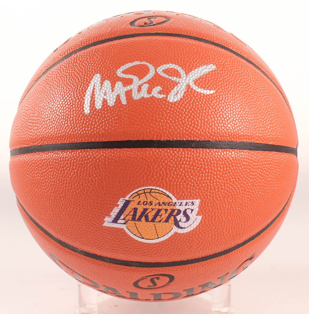 Spalding Official NBA Game Ball Series Lakers logo basketball. Hand-signed in silver paint pen by Magic Johnson (Los Angeles Lakers, HOF).