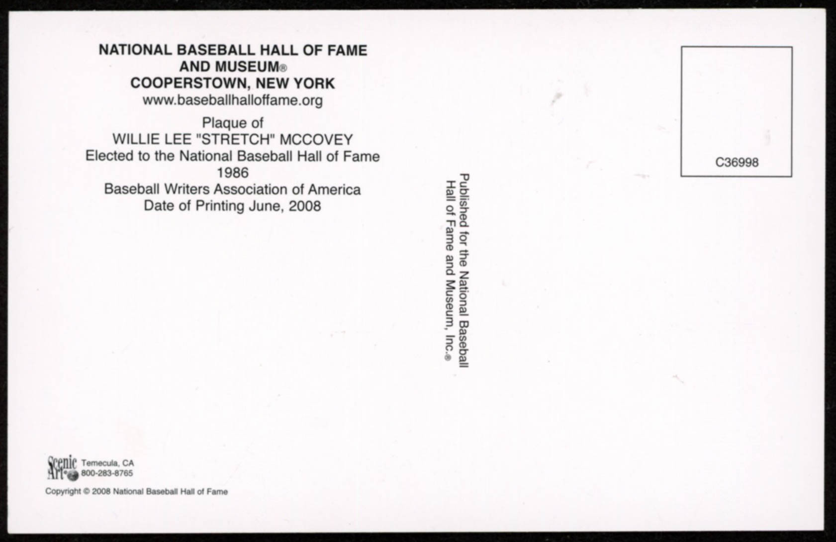 Willie McCovey, nicknamed "Mac", "Big Mac", and "Stretch", Played nineteen seasons for the San Francisco Giants, and three more for the San Diego Padres and Oakland Athletics, between 1959 and 1980. He batted and threw left-handed and was inducted into the Baseball Hall of Fame in 1986.