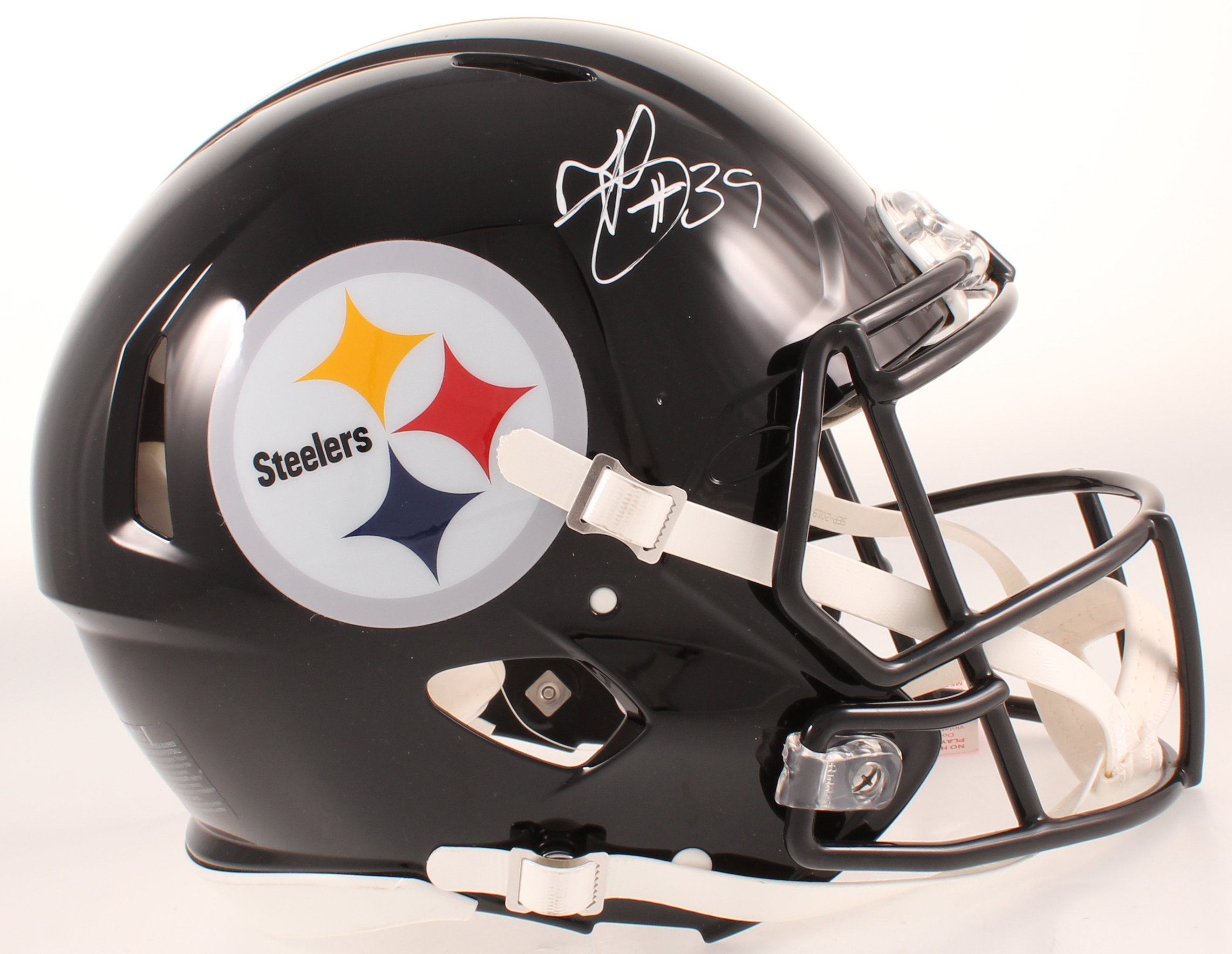 Riddell Pittsburgh Steelers full-size replica speed helmet. Hand-signed in white paint pen by Minkah Fitzpatrick.