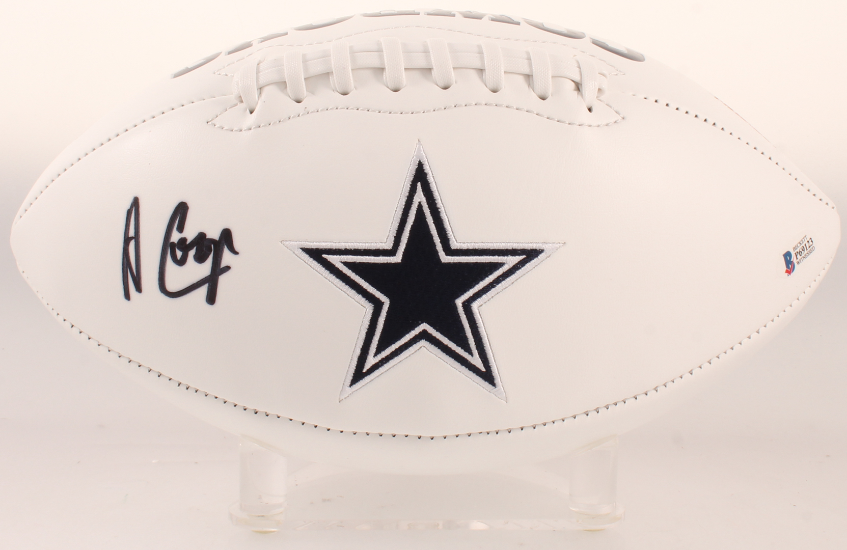 Dallas Cowboys logo football. Hand-signed in black felt-tip pen by Amari Cooper. Please see photos regarding the condition of the football.