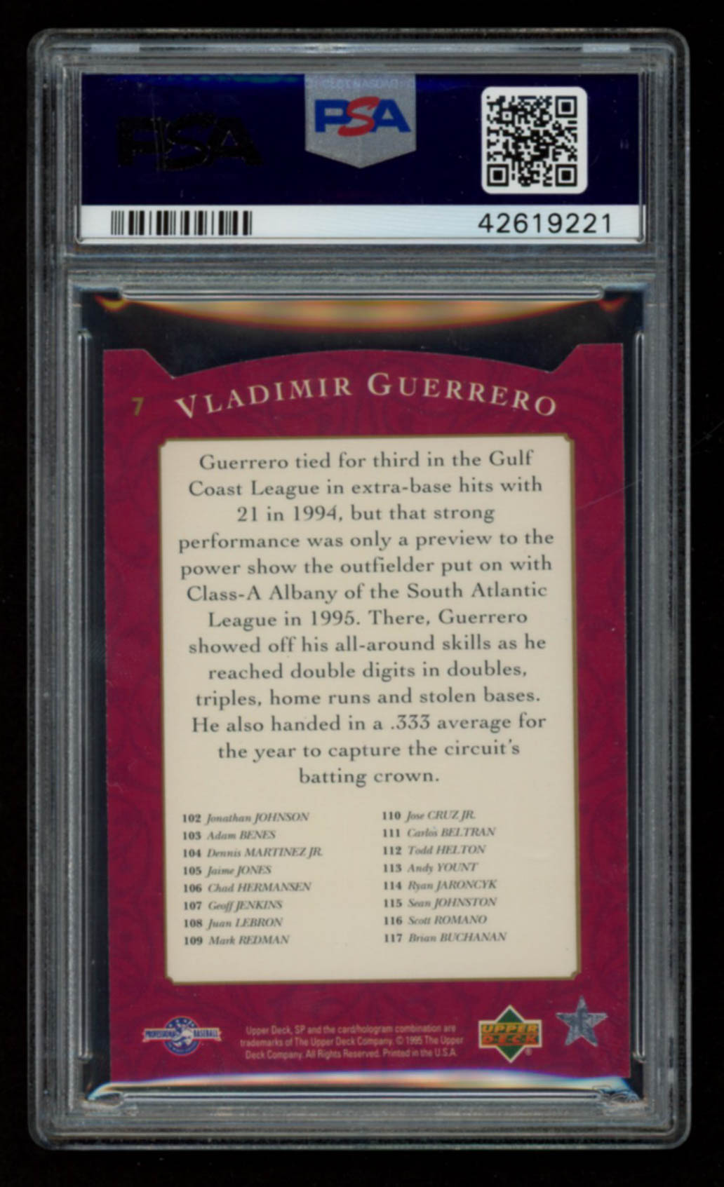 Vladimir Guerrero 1995 SP Top Prospects #7 (PSA 10)