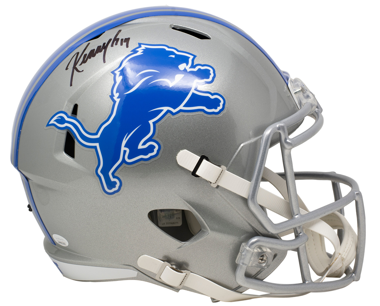 Detroit Lions full-size replica speed helmet. Hand-signed in black felt tip pen by Kenny Golladay.