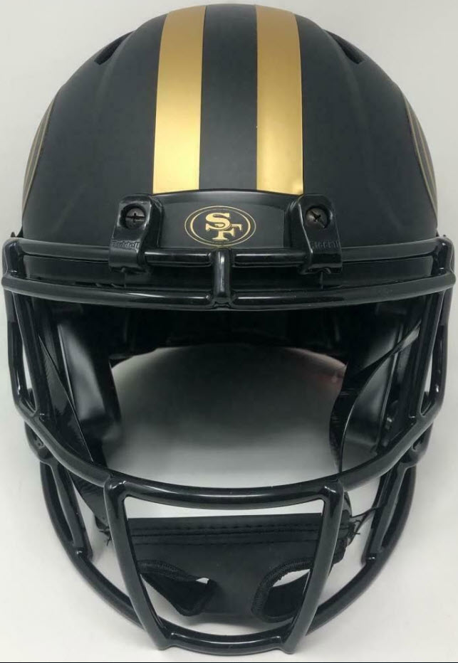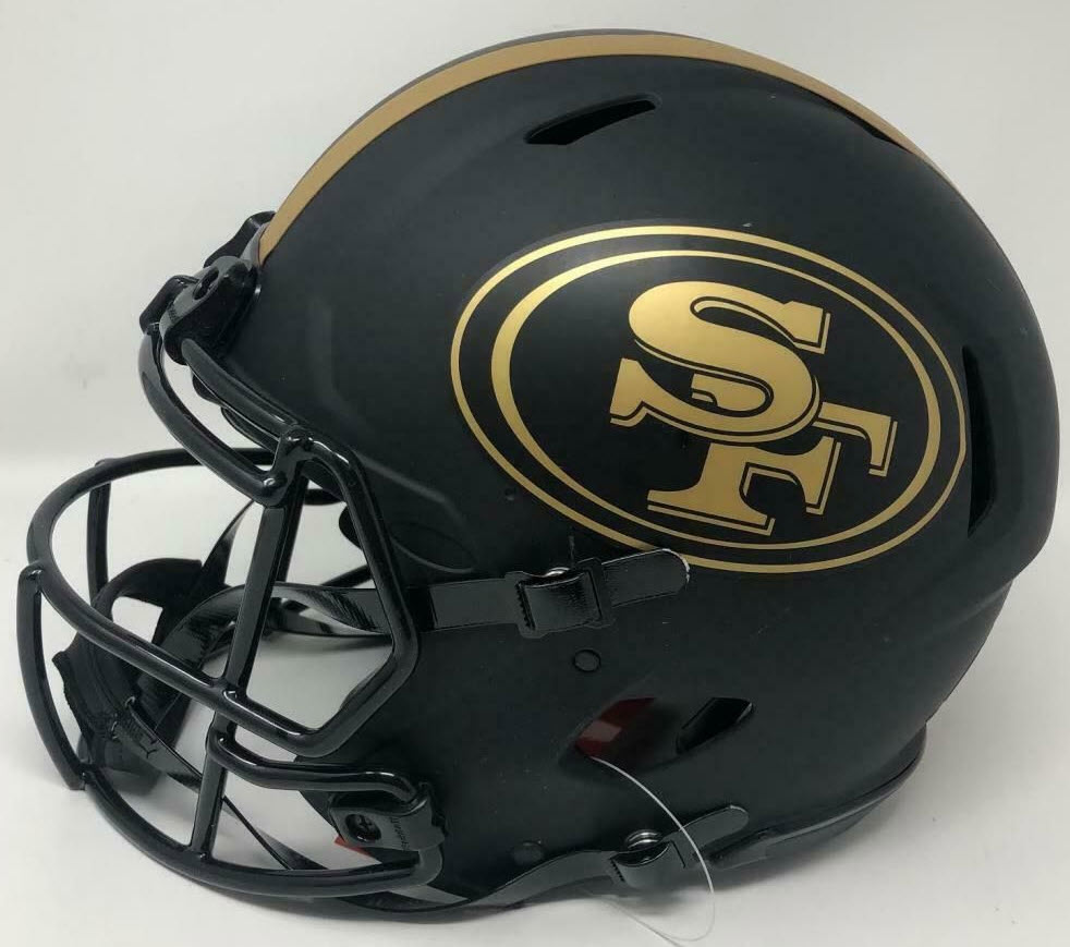 Riddell San Francisco 49ers full-size authentic on-field Eclipse Alternate speed helmet. Hand-signed by Jimmy Garoppolo.
