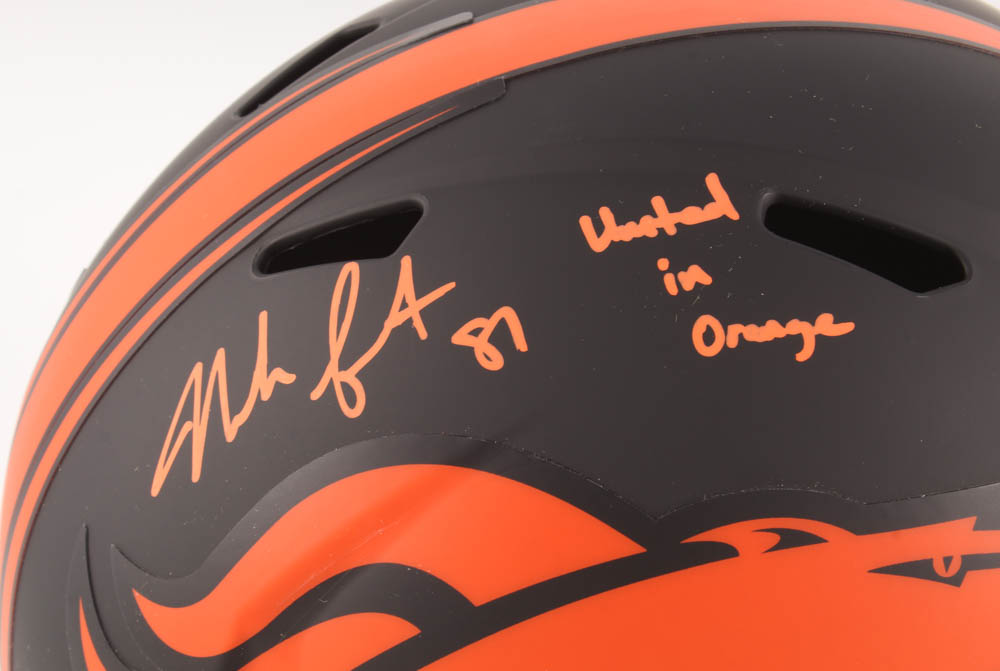 Noah Fant Signed Broncos Full-Size Eclipse Alternate Speed Helmet Inscribed "United in Orange" (JSA COA)