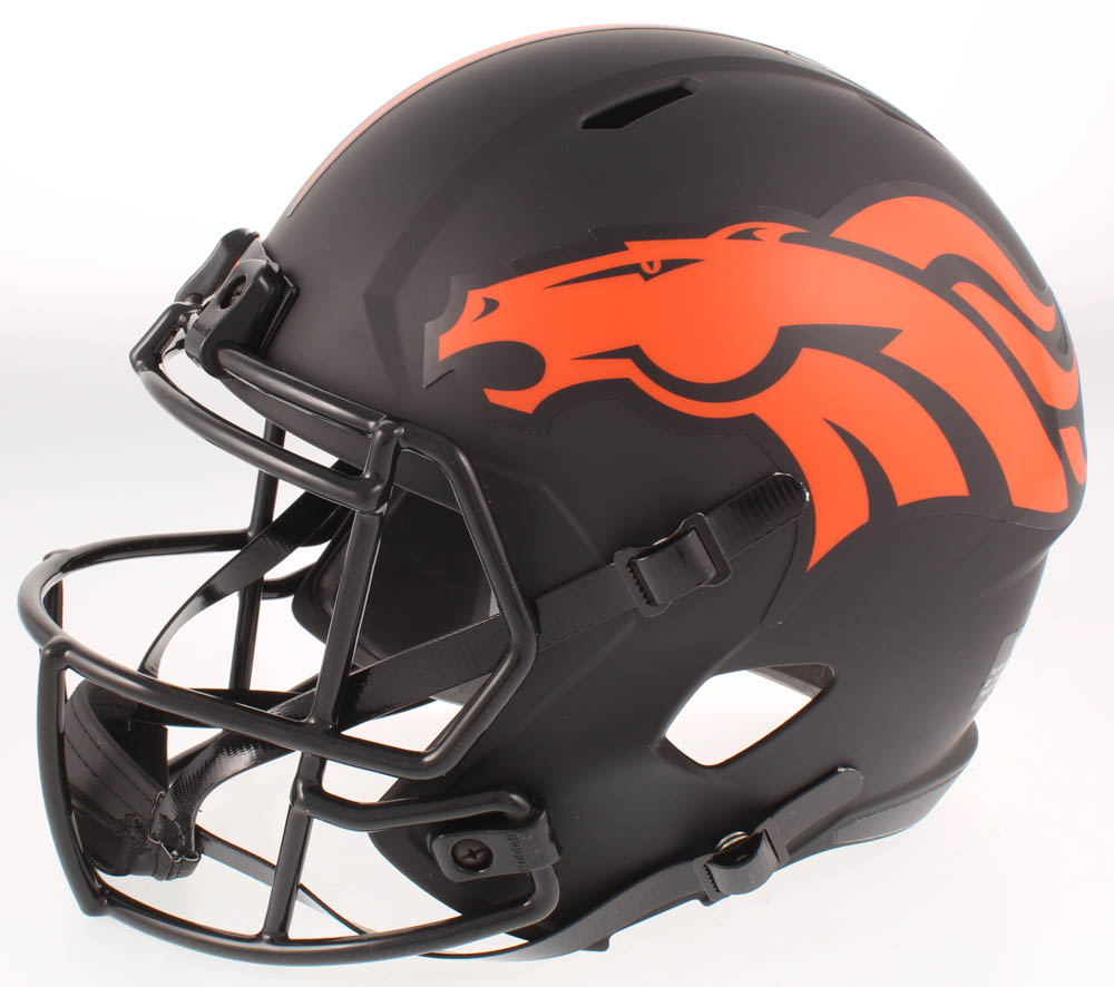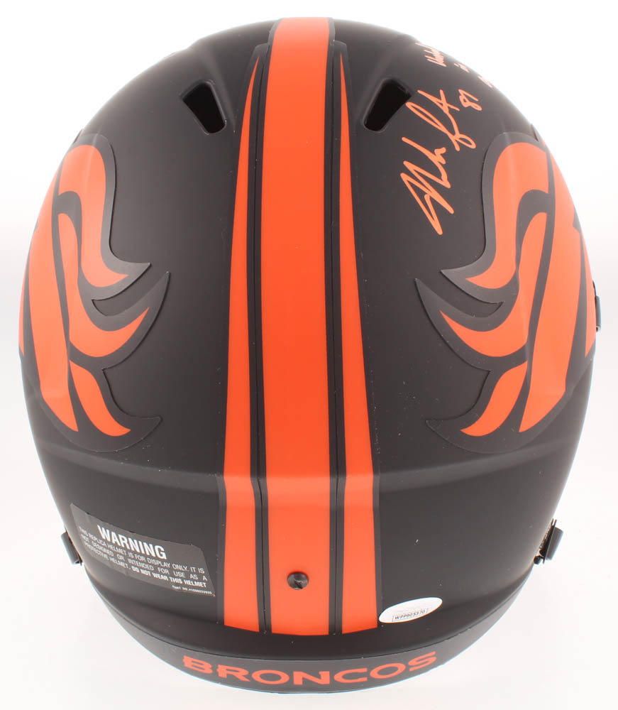 Riddell Denver Broncos full-size replica Eclipse Alternate Speed Helmet has been hand-signed and inscribed in orange paint pen by Noah Fant.