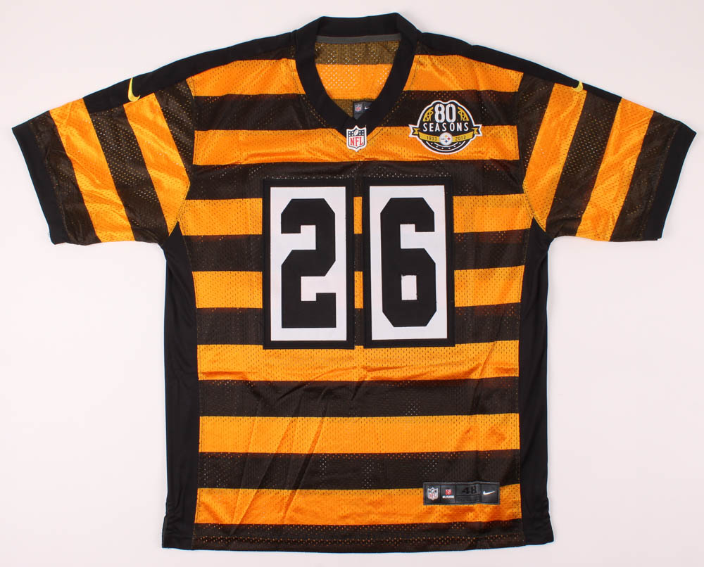 Nike on-field style jersey, size 48. Hand-signed in silver paint pen by Le'Veon Bell (Pittsburgh Steelers).