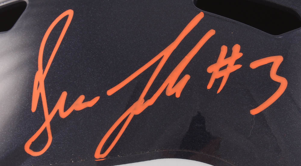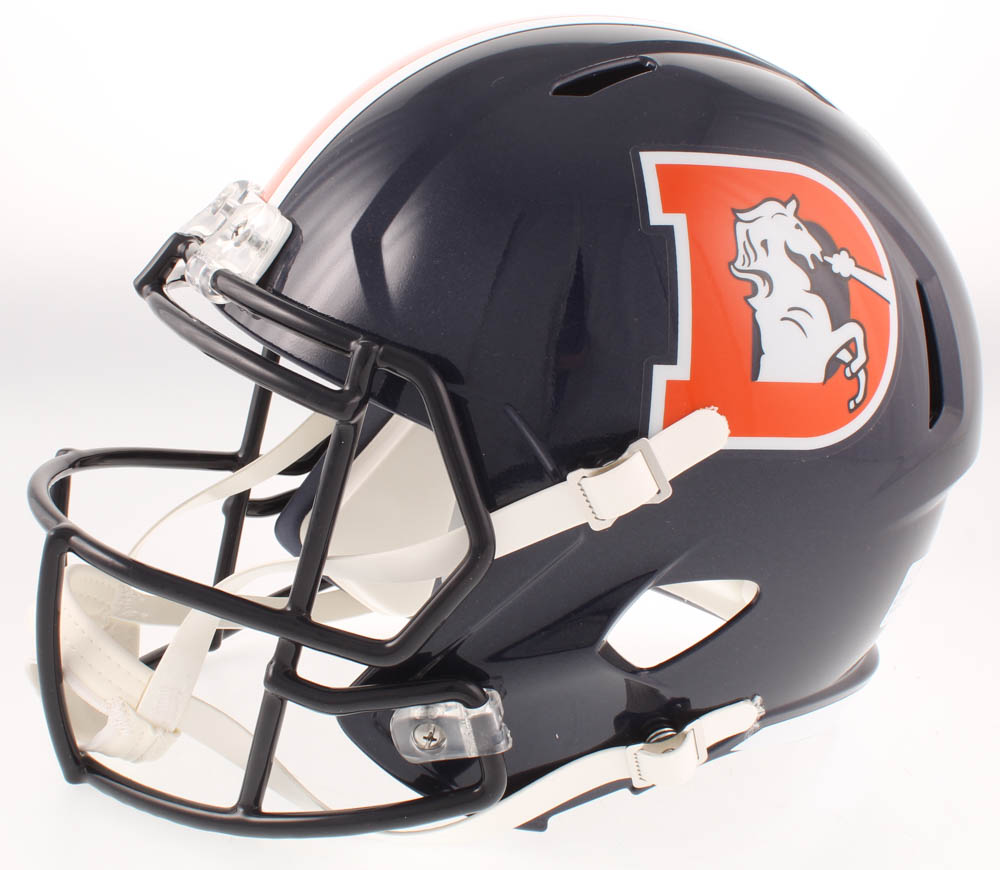 Riddell Denver Broncos full-size replica Throwback Speed helmet has been hand-signed in orange paint pen by Drew Lock.