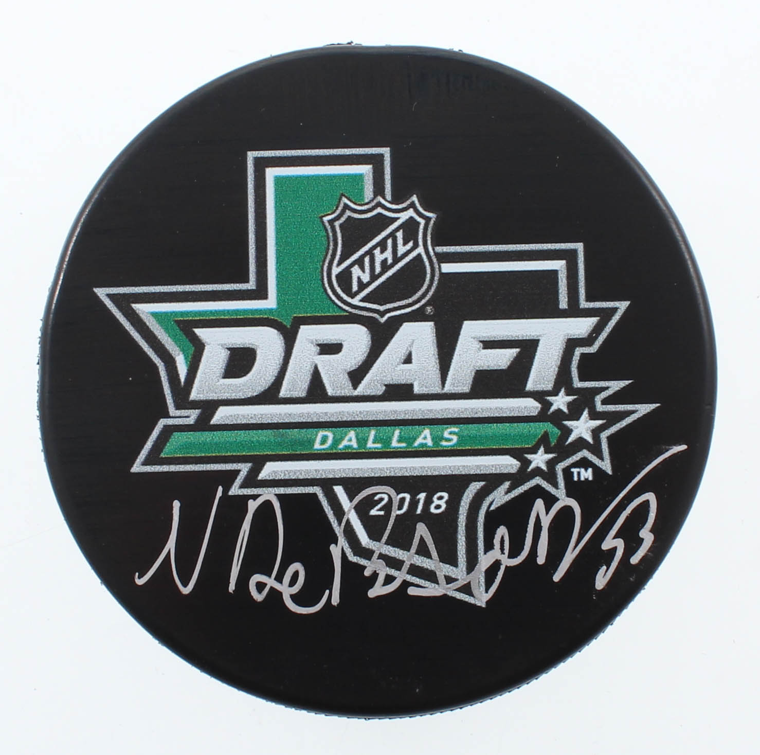 Noah Dobson Signed 2018 NHL Draft Logo Hockey Puck (COJO COA)