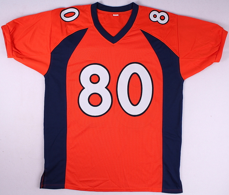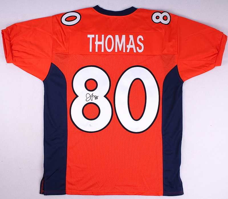 Custom on-field style jersey. Everything is sewn on, size XL. Hand-signed in black felt tip pen by Julius Thomas (Broncos). The autograph includes a James Spence Authentication (JSA) hologram and matching COA for authenticity purposes.
