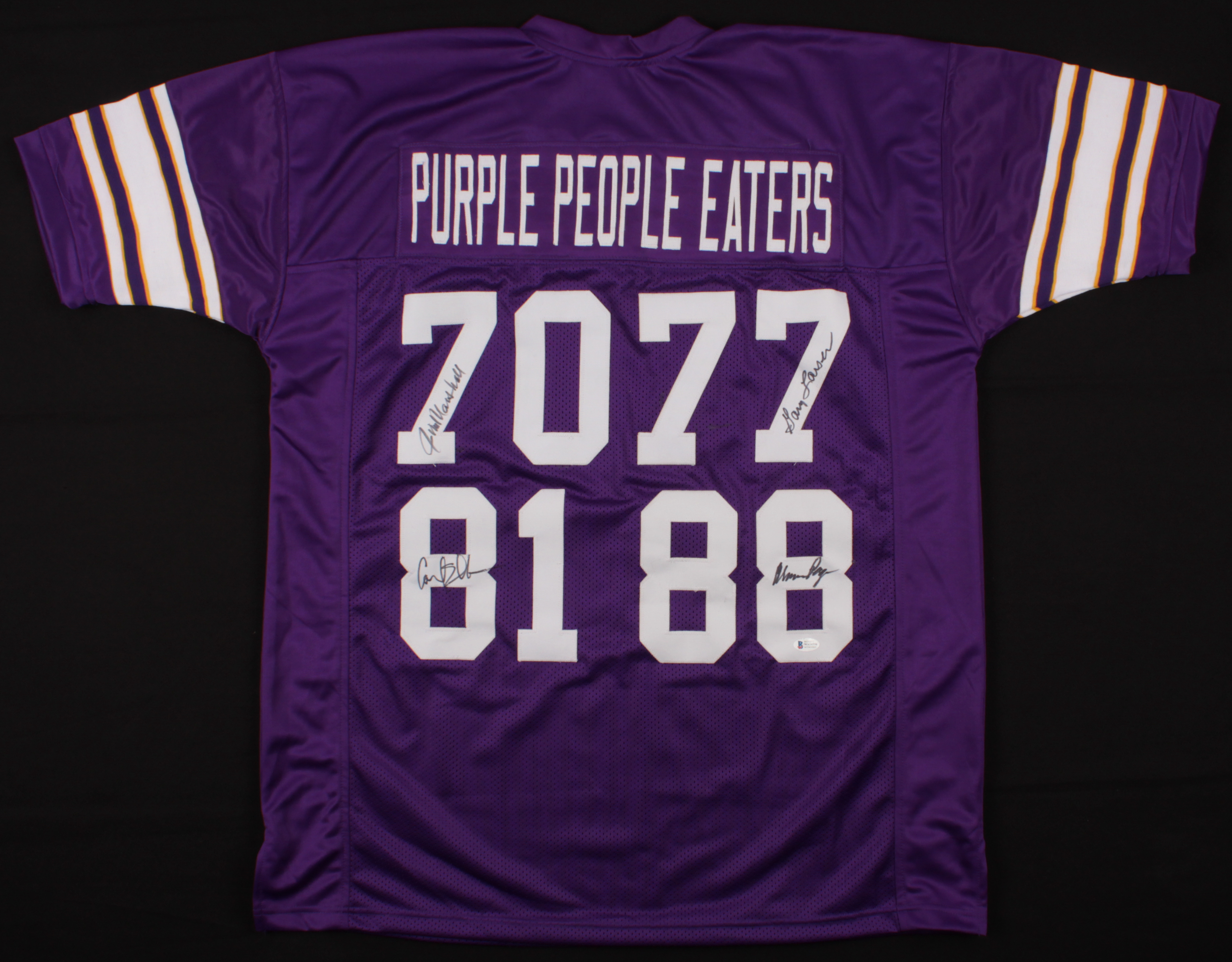"Purple People Eaters" Jersey Signed by (4) with Alan Page, Gary Larsen, Carl Eller & Jim Marshall (Beckett Hologram)