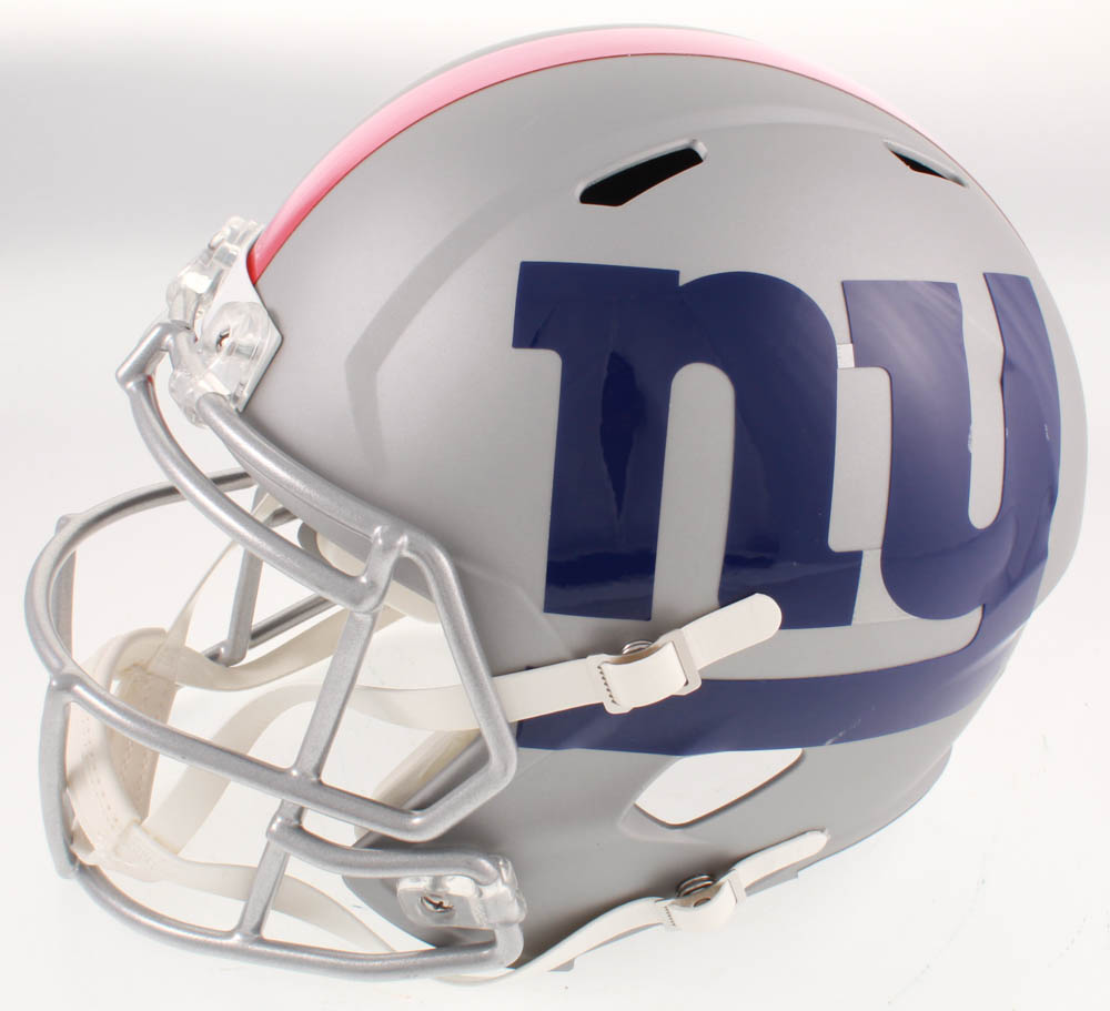 Riddell New York Giants full-size replica AMP Alternate speed helmet. Has been hand-signed in red paint pen by Daniel Jones.