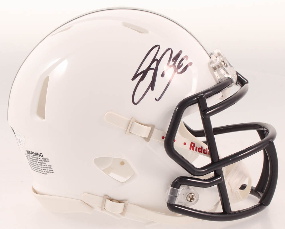 Riddell Penn State Nittany Lions speed mini-helmet. Hand-signed in black felt-tip pen by Saquon Barkley.