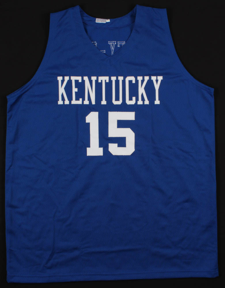 Custom on-court style jersey. Everything is sewn on, size XL. Has been hand-signed in black felt-tip pen by Willie Cauley-Stein.