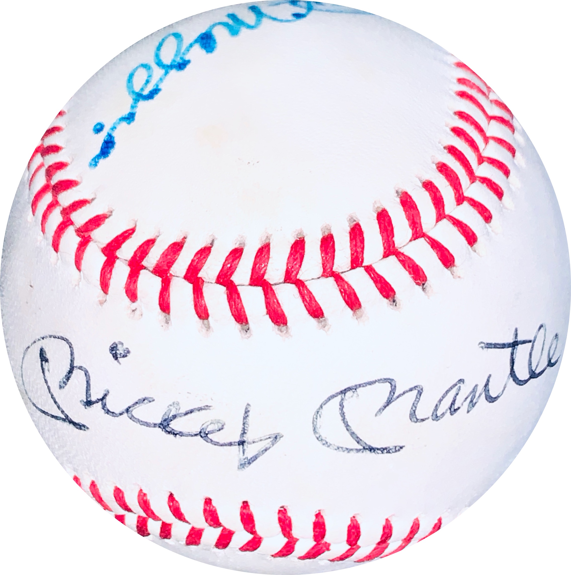 Every Autograph is on a Rawlings Official Major League, American League or National League leather baseball or rare specialty logo baseball besides the Ruth (on a Ruth Home Run Baseball) and the 1953 Yankees with Mantle (on a Reach American League Baseball).