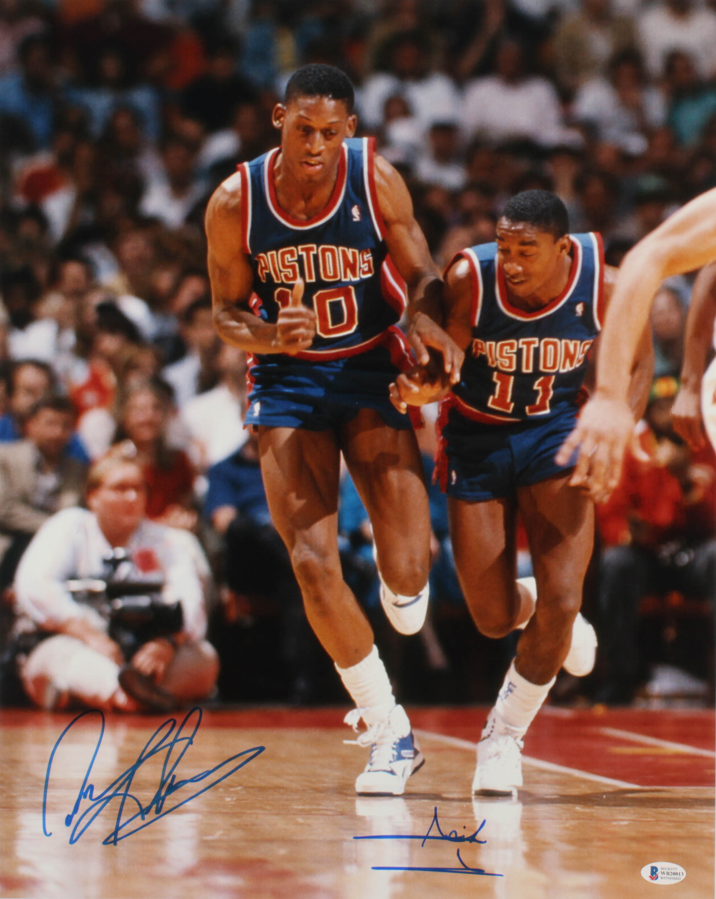 Isiah Thomas & Dennis Rodman Signed Pistons 16x20 Photo (Beckett Hologram)