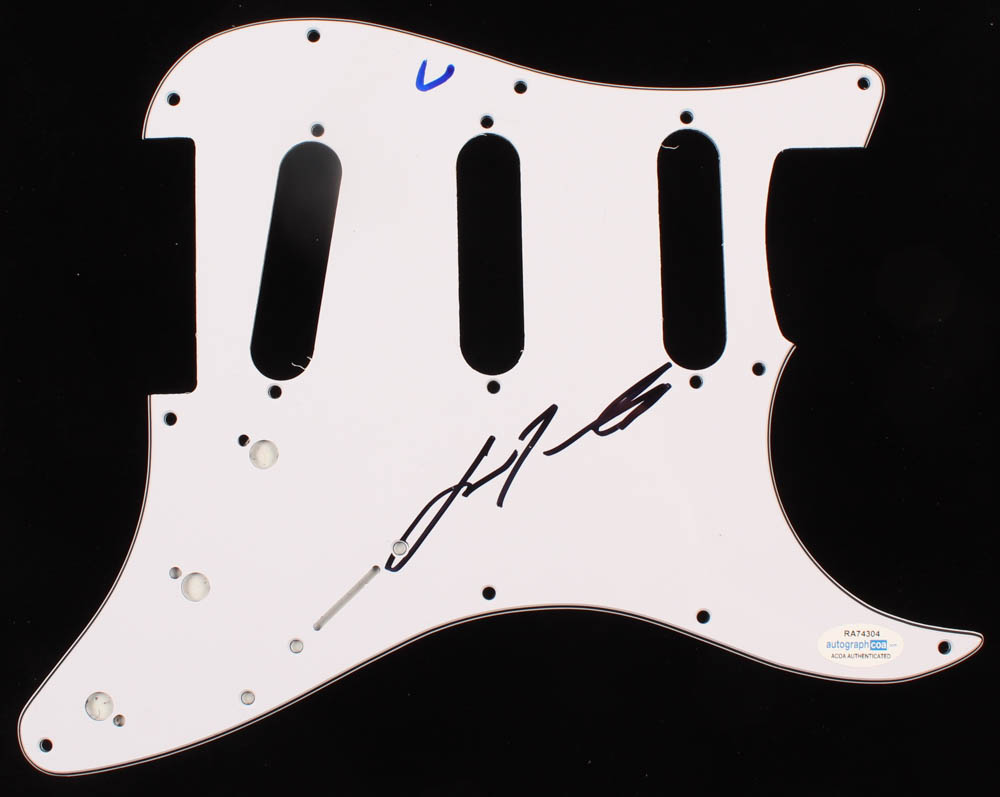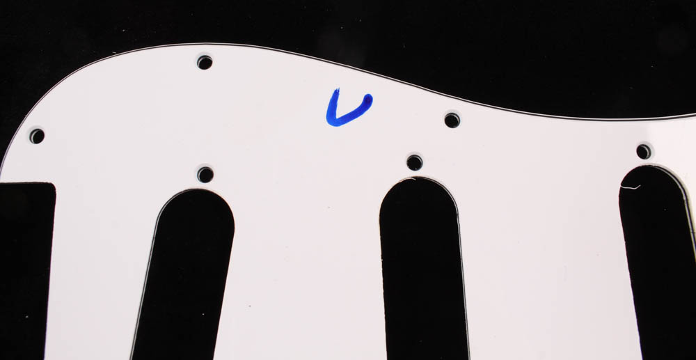 Electric guitar pickguard has been hand-signed in black felt-tip pen by John Travolta.