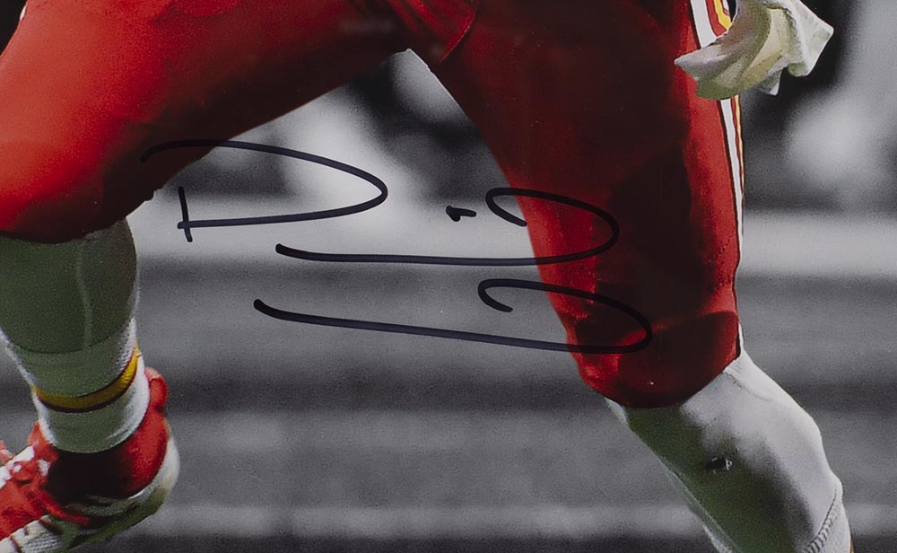 Custom framed photo measures 22" x 27" in size and has been hand-signed in black felt tip pen by Patrick Mahomes (Kansas City Chiefs).