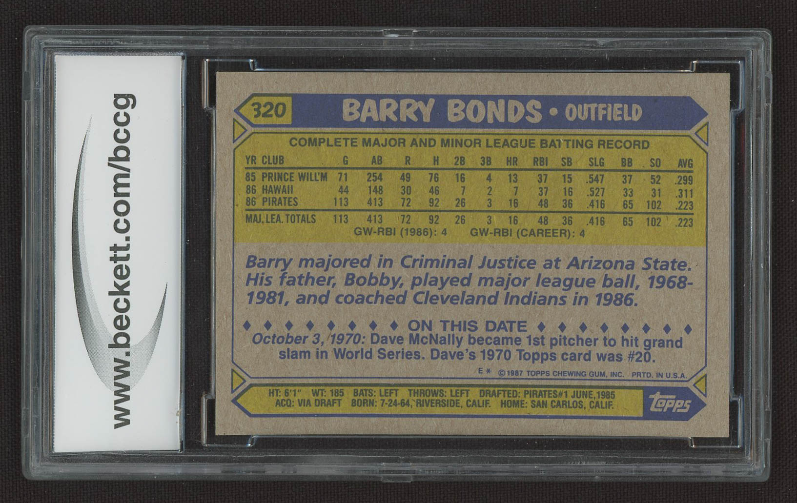Barry Bonds 1987 Topps #320 RC (BCCG 10)