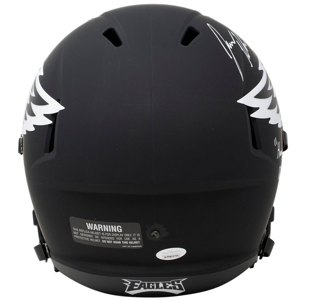 Riddell Philadelphia Eagles Eclipse Alternate full-size replica speed helmet. Hand-signed and inscribed in white paint pen by Jason Kelce.