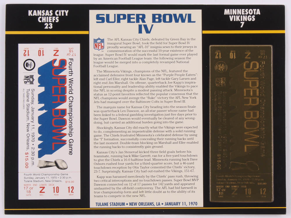 Super Bowl IV Commemorative Score Card with 22kt Gold Ticket