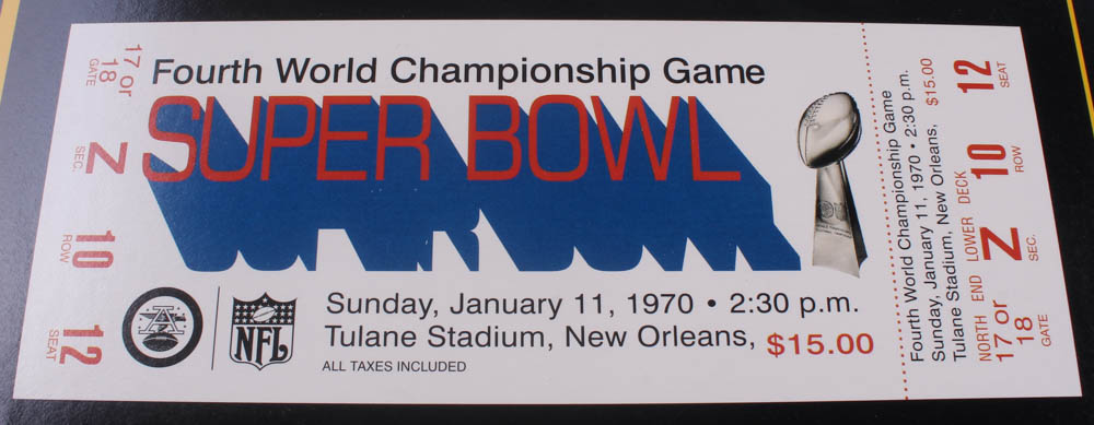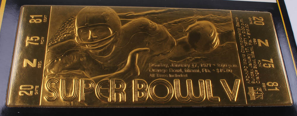 Super Bowl score card measures approximately 9.25" x 12" in size. Also includes a 22kt gold replica ticket.