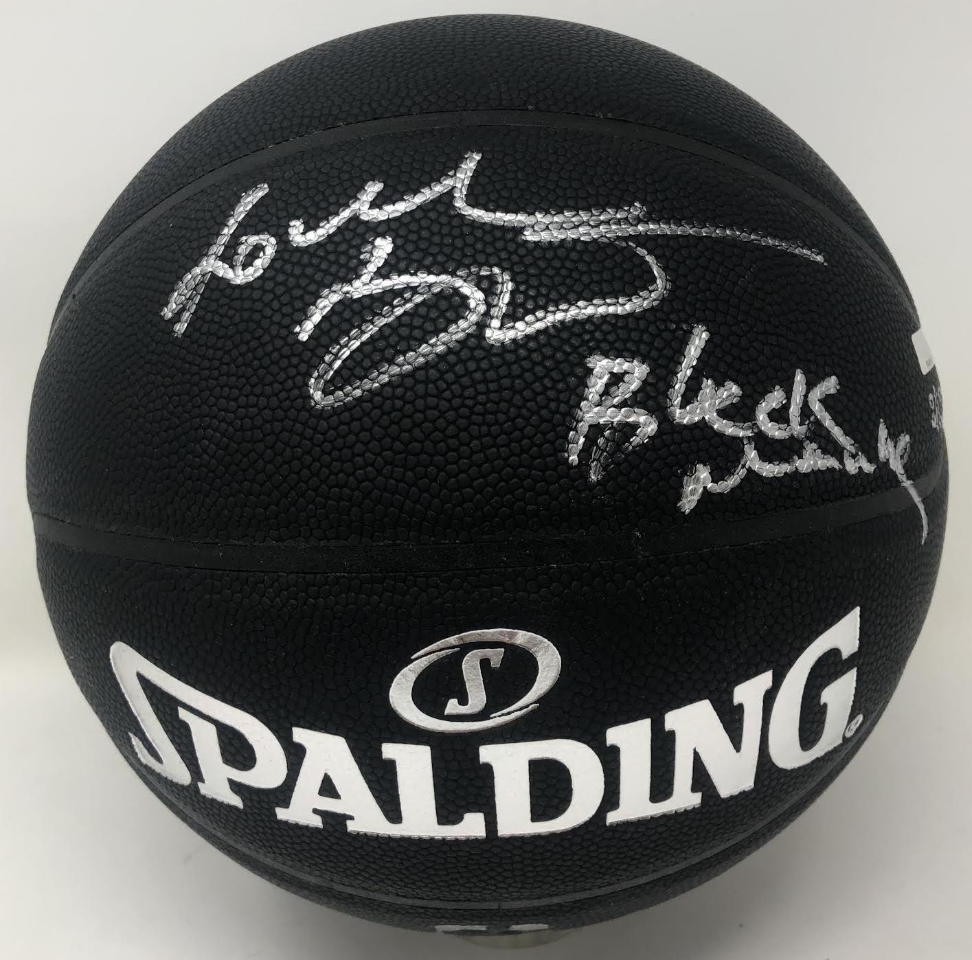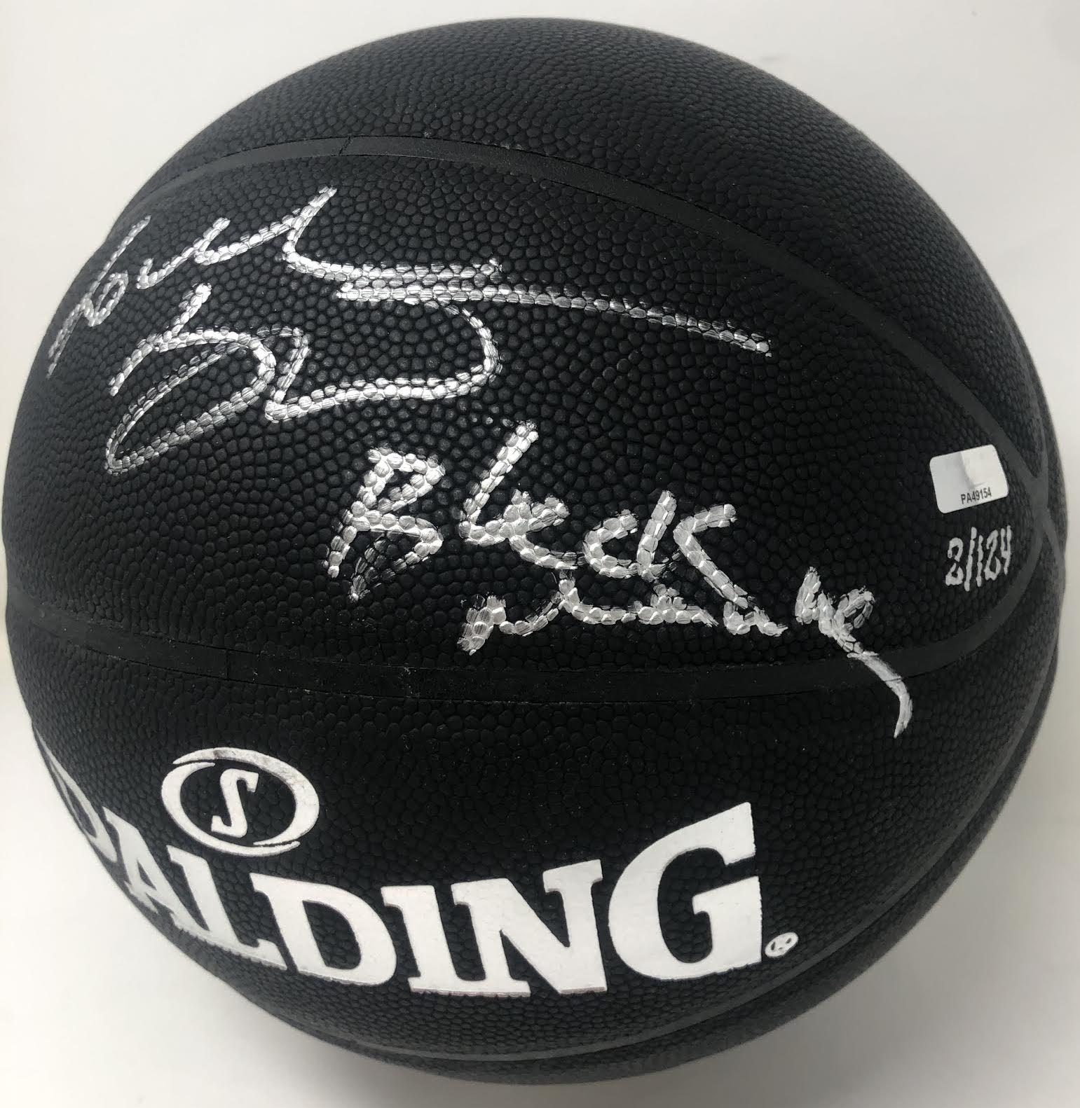 Spalding Arena Series basketball has been hand-signed and inscribed in silver paint pen by Kobe Bryant (Los Angeles Lakers). The basketball is a limited edition and has been hand-numbered #2/124.