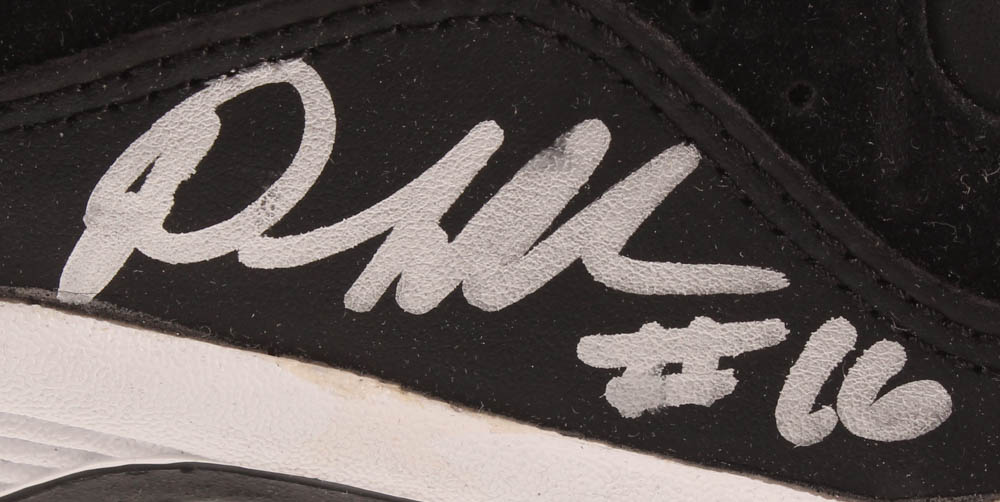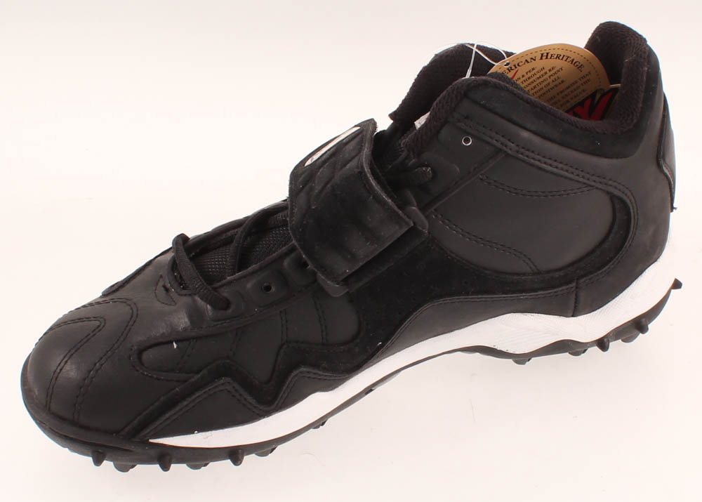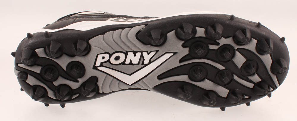 Pony on-field football cleat, size 9.5. Right foot cleat has been hand-signed in silver paint pen by Denard Robinson (Jacksonville Jaguars).
