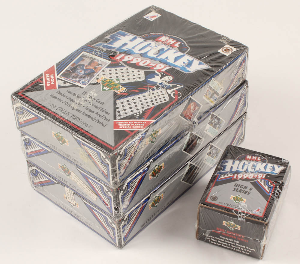 Lot of (4) 1990-91 Upper Deck Hockey Card Boxes With High Number Series Box, High Series Box & Hobby Box