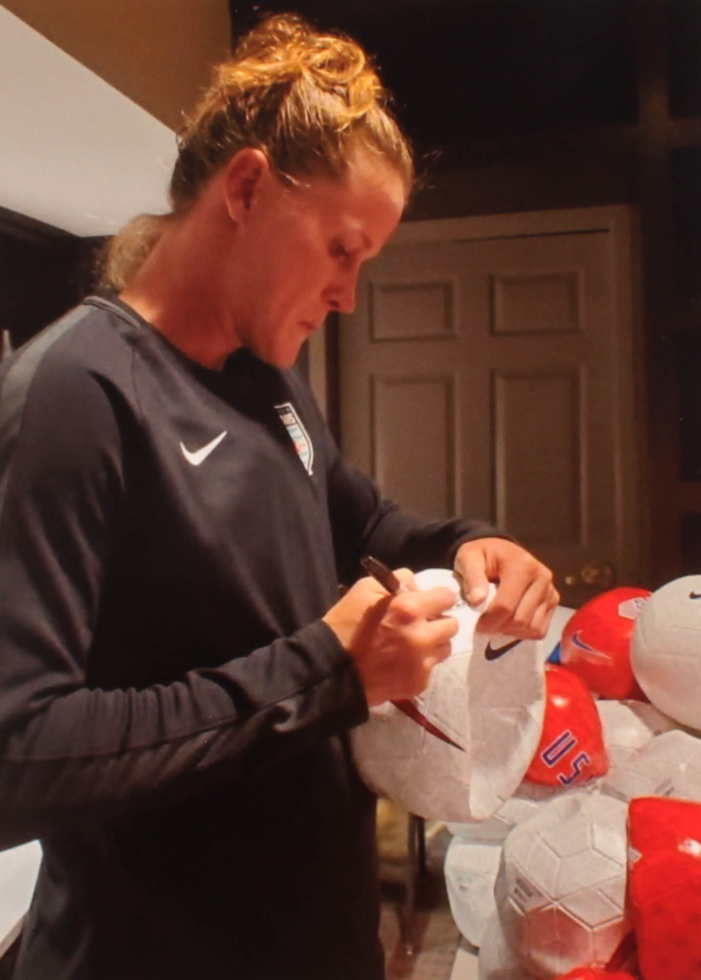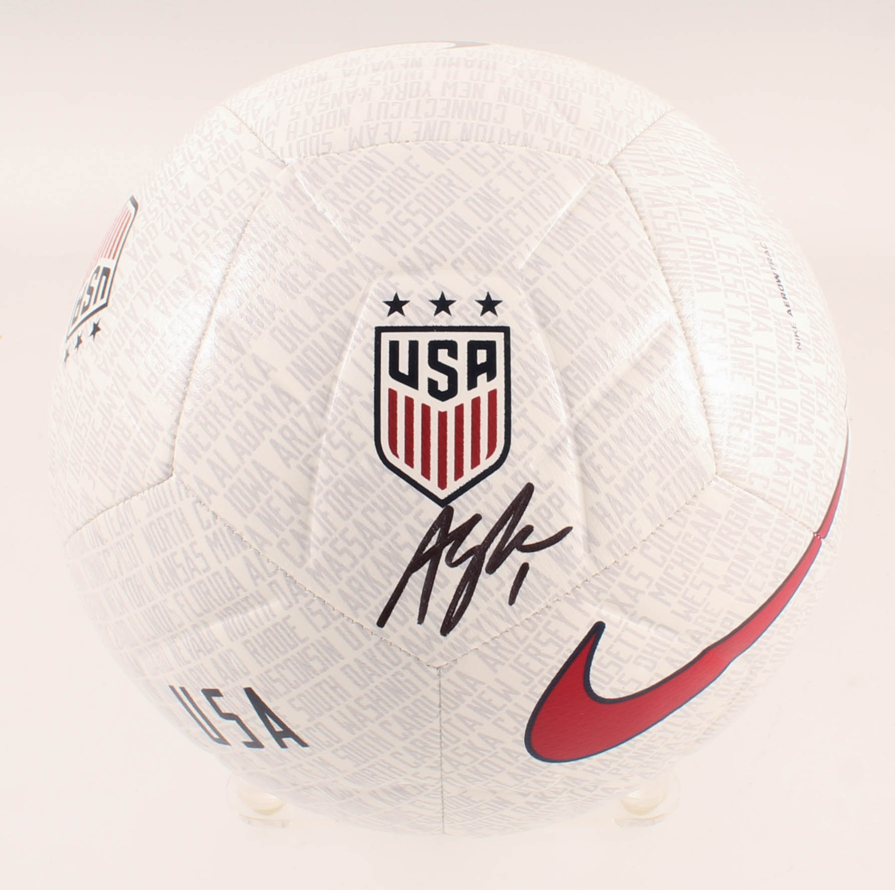 Nike Team USA logo soccer ball has been hand-signed in black felt-tip pen by Alyssa Naeher.