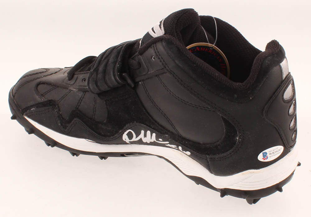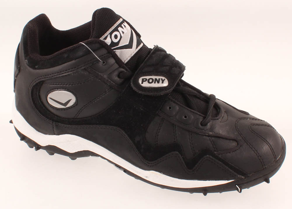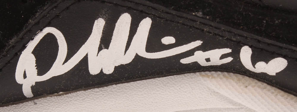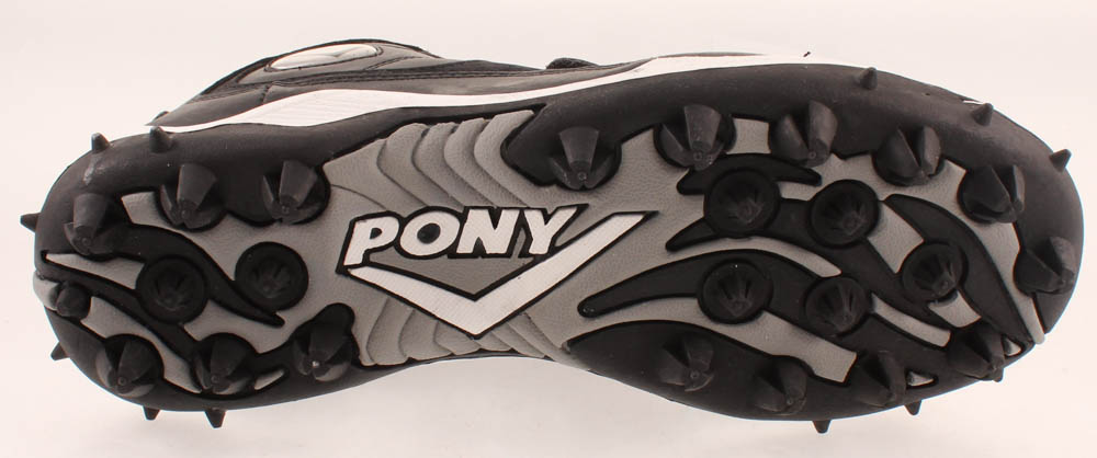 Pony on-field football cleat, size 9.5. Right foot cleat has been hand-signed in silver paint pen by Denard Robinson (Jacksonville Jaguars).