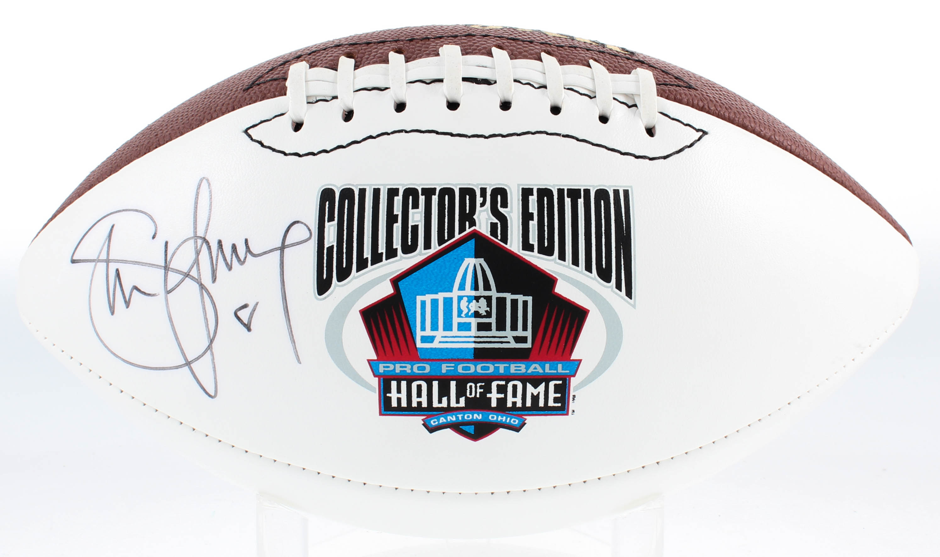 Wilson "The Duke" NFL football. Hand-signed in black felt tip pen by Steve Young. (San Francisco 49ers, HOF) Please see photos for details regarding condition.